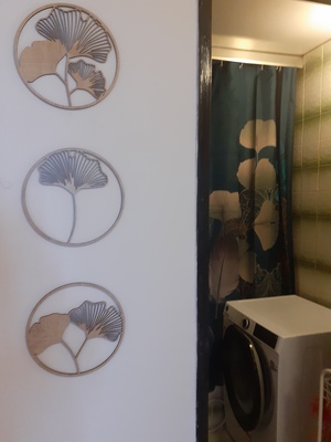 Som veľmi spokojná, dekorácia decentná a krásna - použila som na stenu v predsieni - skrášli vstup do bytu. Dekor Ginkgo som sladila s doplnkami v kúpeľni.