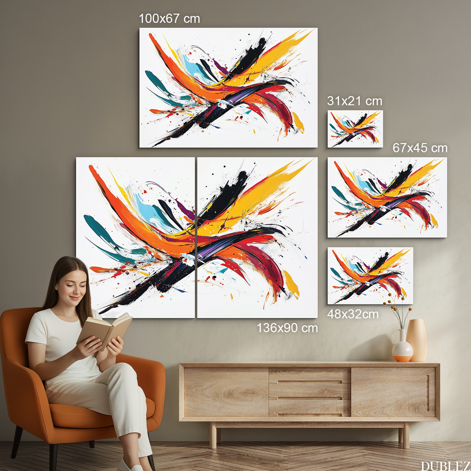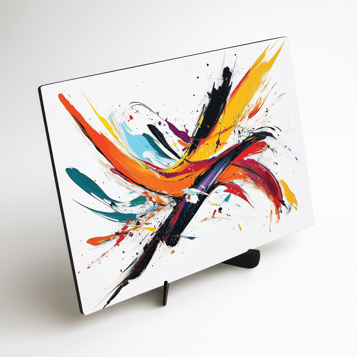 Moderný abstraktný obraz na dreve v živých farbách okamžite oživí akúkoľvek stenu. Dynamické ťahy štetca v kombinácii s odvážnymi farbami, vytvárajú energickú atmosféru a moderné abstraktné umenie. Je ideálny pre interiéry, ktoré potrebujú dávku farby a originality. Vďaka svojmu modernému dizajnu sa hodí do obývačky, spálne, pracovne či kancelárie, kde môže slúžiť ako centrálny bod pozornosti a vniesť do miestnosti pocit tvorivosti a energie.