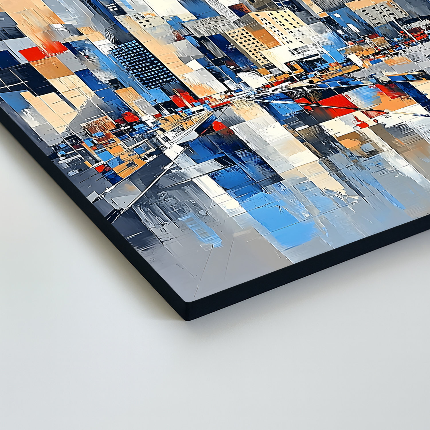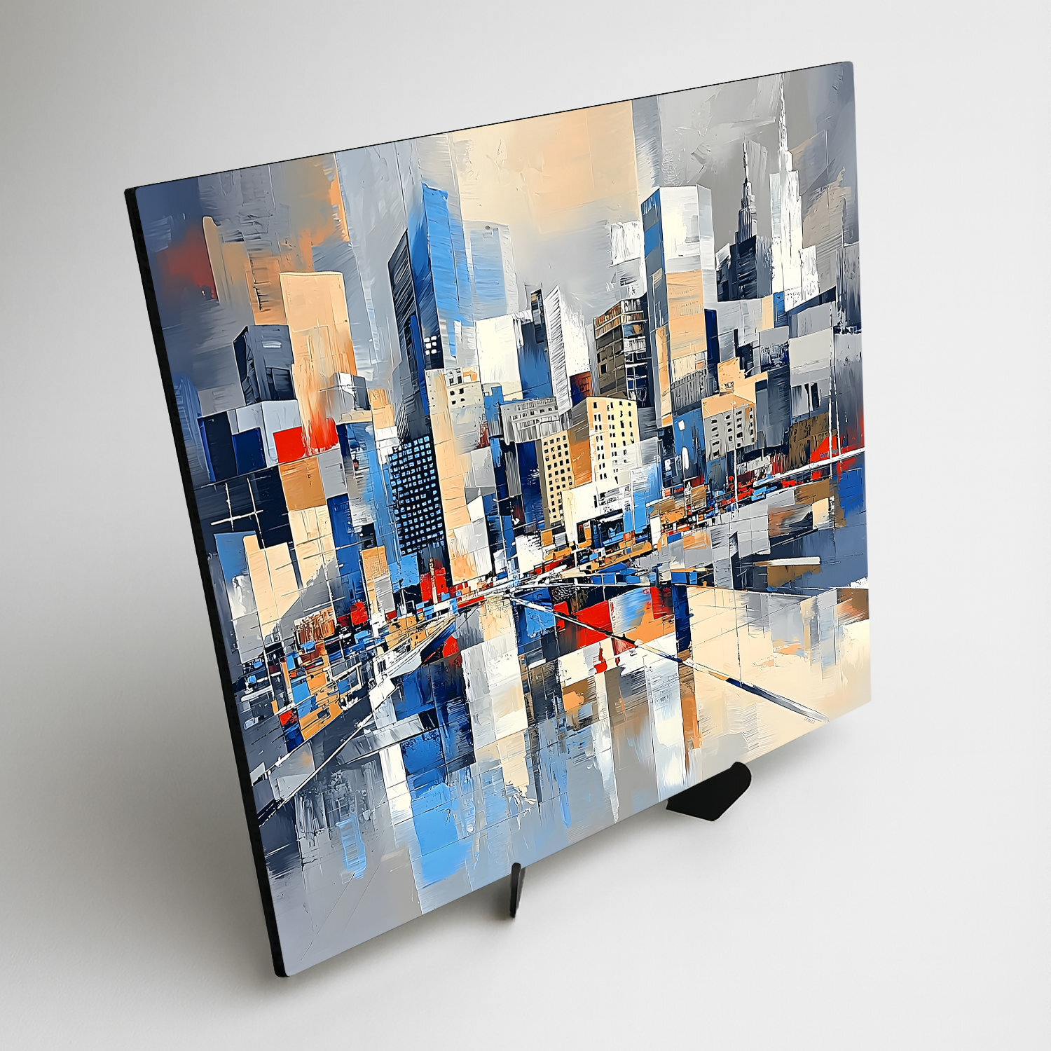 Moderný abstraktný obraz mesta v živých farbách okamžite pritiahne pozornosť. Kombinácia ostrých línií, dynamických tvarov a odvážnych farieb vytvára dojem pohybu a energie, ktorý je typický pre rušné veľkomesto. Drevený obraz v urbanistickom štýle vynikne na stene obývačky, v spálni, pracovni aj kancelárii – všade tam, kde chceš vytvoriť pocit originality, kreativity a mestského štýlu.