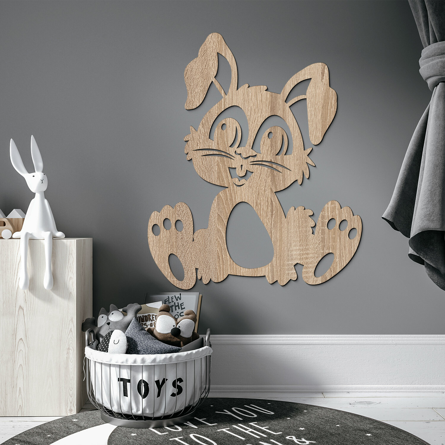 Rozžiarte detskú izbu drevenou dekoráciou veselého zajka. Skvele sa hodí nad postieľku, k poličke s hračkami alebo do hracieho kútika. Jednoduchá montáž uľahčí prácu každej mamičke, ktorá chce vytvoriť krásnu detskú izbu pre svoje dieťatko. Obraz zajka je aj originálny darček k narodeniu dieťaťa, na krstiny alebo len tak – pre radosť.