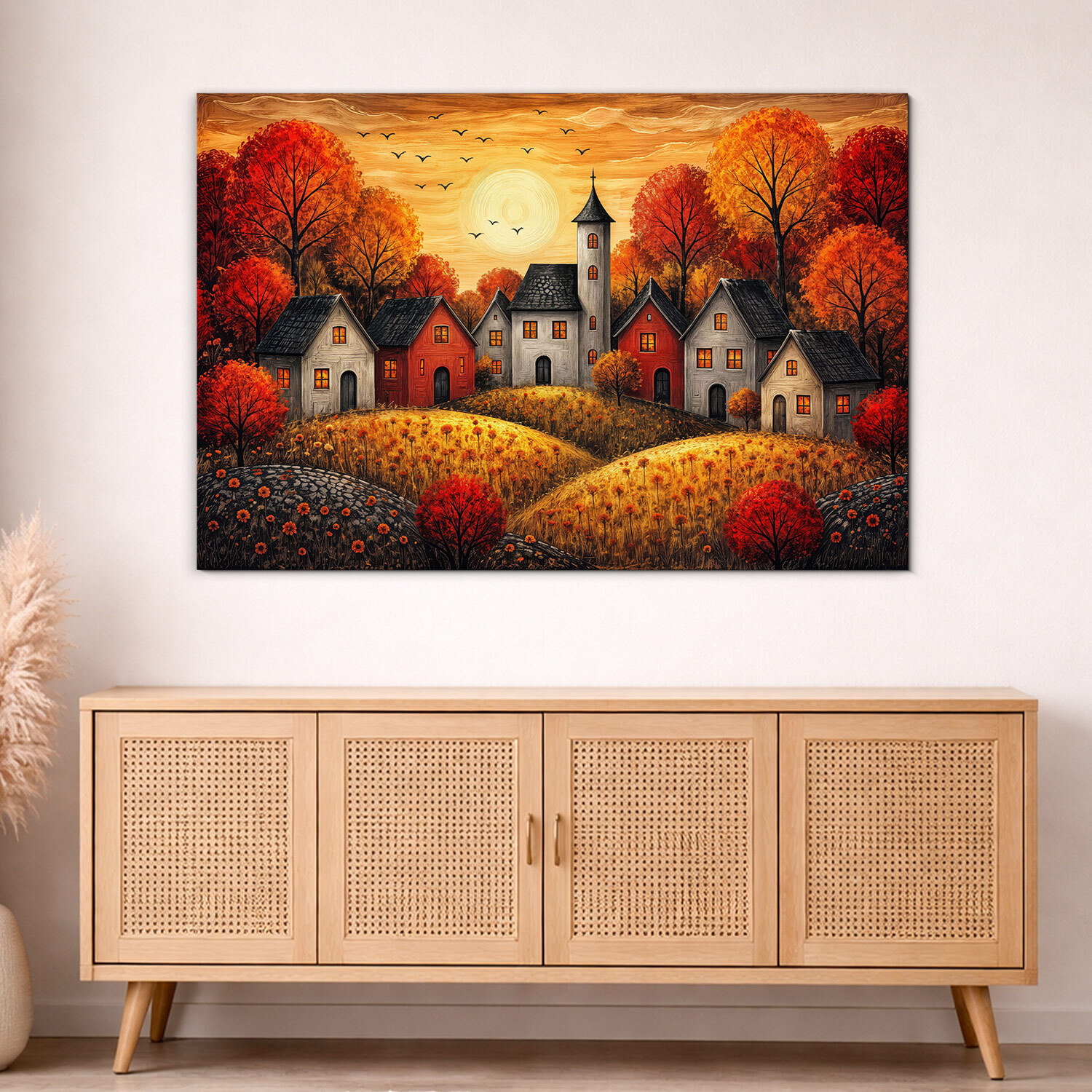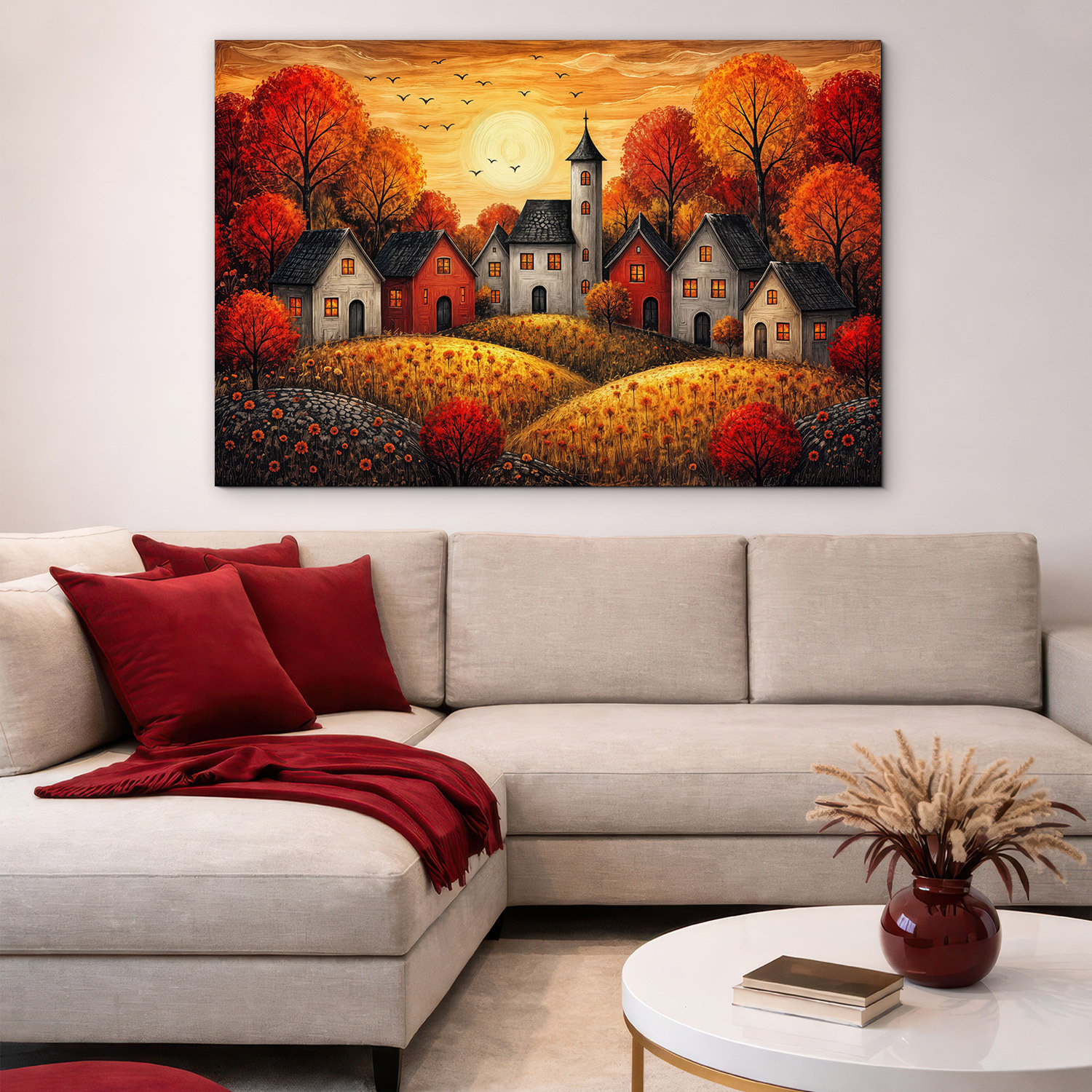 - Dekoratívny obraz - Dedinka pod jesenným slnkom