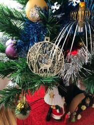 Vianočná guľa je vyrobená z 3 mm topoľovej preglejky. Vďaka nízkej hrúbke sa vianočná ozdoba jednoducho skladuje a nezaberá toľko miesta ako tradičné sklenené gule.