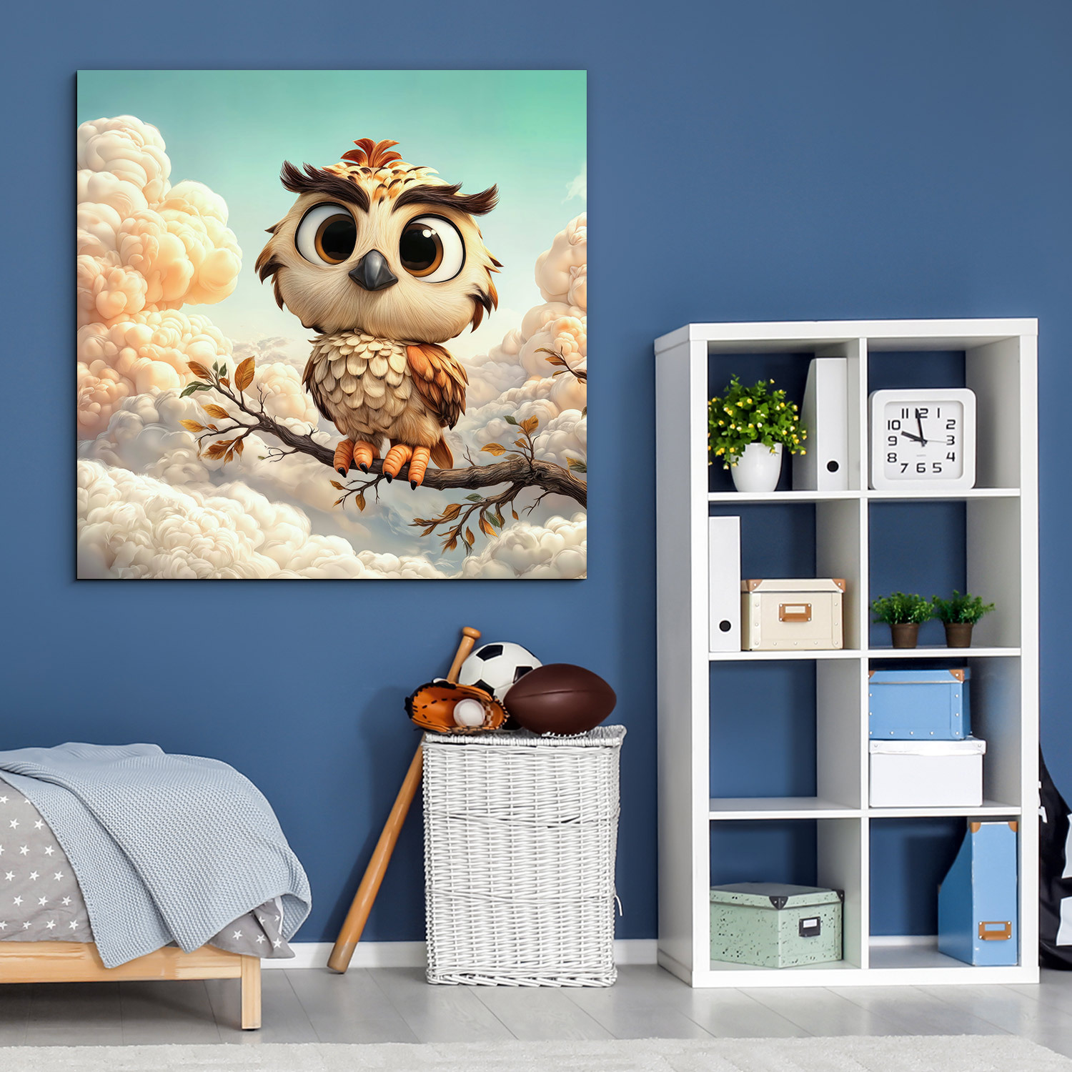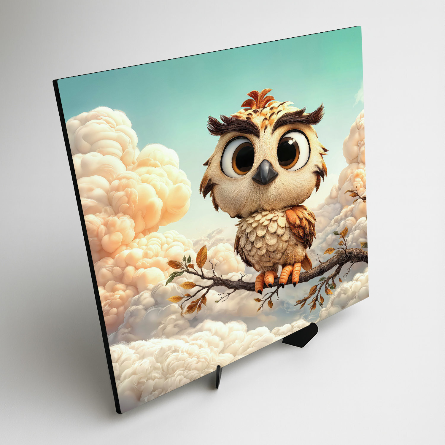 Detská nástenná dekorácia s rozkošnou lesnou sovičkou bdejúcou vysoko nad nadýchanými oblakmi. Malý vtáčik so zvedavým pohľadom pôsobí ako verný strážca detských snov, ktorý z výšky dohliada na pokojný a ničím nerušený spánok. Drevený obraz je ako stvorený do detskej izbičky. Kvalitná farebná potlač na dreve dáva vyniknúť každému detailu nadýchaného peria a jemným tieňom v oblakoch, pričom zaručuje, že táto dekorácia zostane krásna po celé detstvo.
