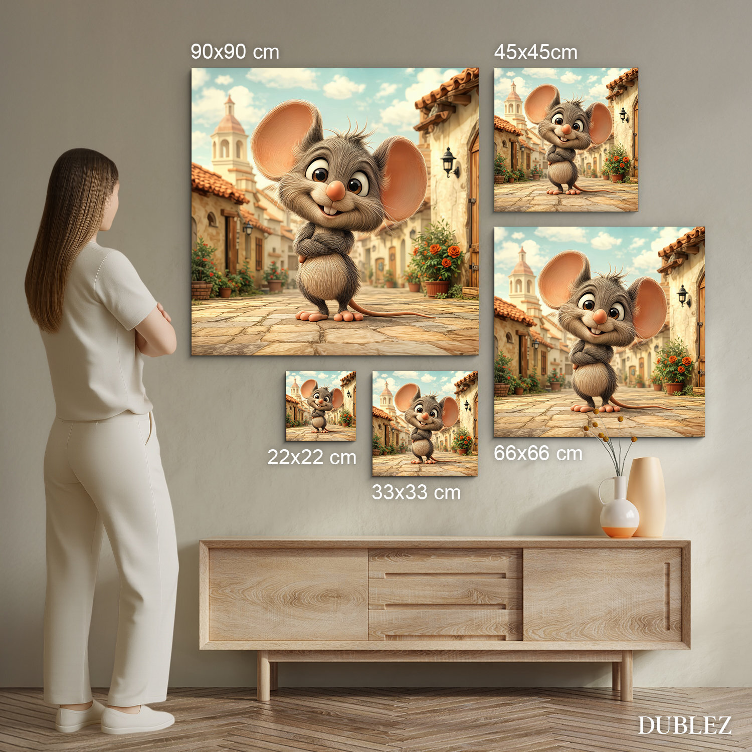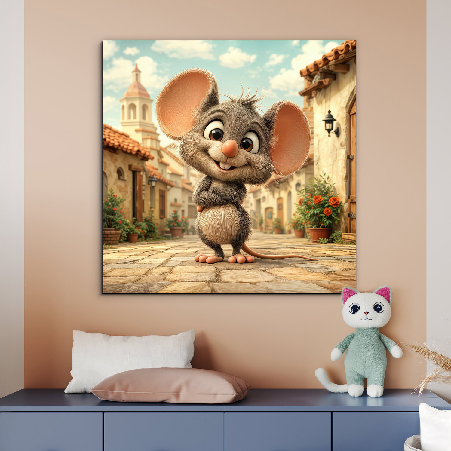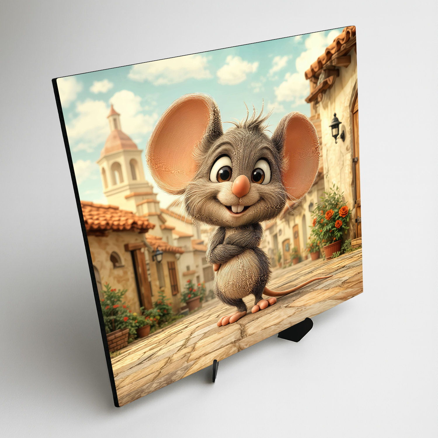 Detský obraz na stenu s roztomilou myškou prinesie do každej detskej izby hravosť, úsmev a príjemnú atmosféru. Ilustrácia malého myšiaka v jemných teplých farbách pôsobí milo a pozitívne, vďaka čomu sa stáva obľúbeným doplnkom u detí aj rodičov. Drevený obraz je ideálny do detskej izby pre škôlkara či mladšieho školáka. Kvalitná farebná potlač na drevenom podklade zaručuje dlhú životnosť a sýtosť farieb, ktoré rozžiaria detský svet.