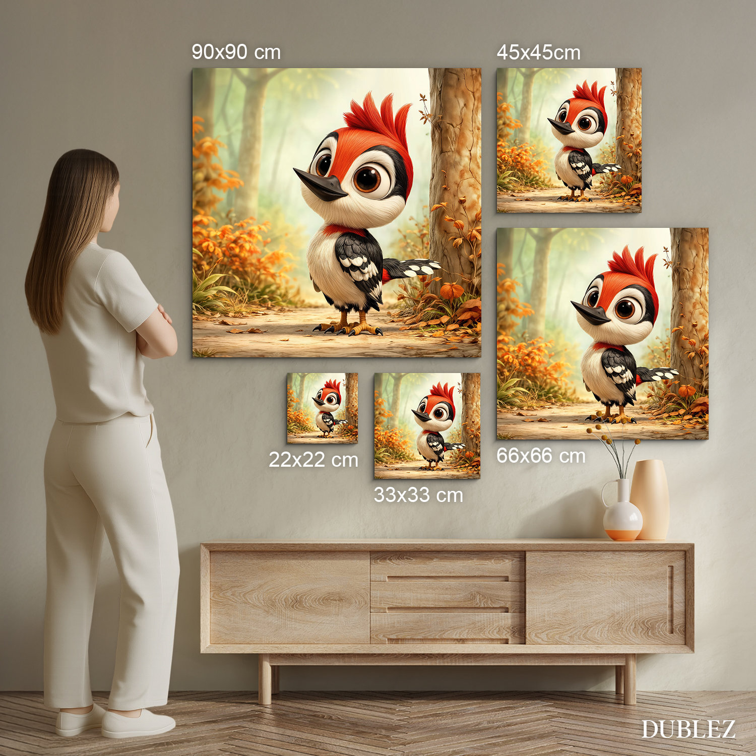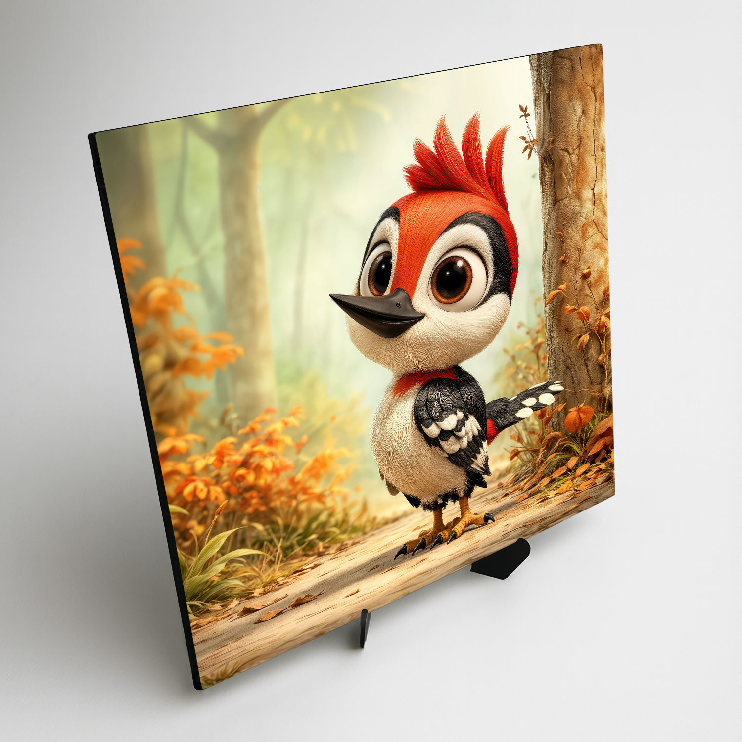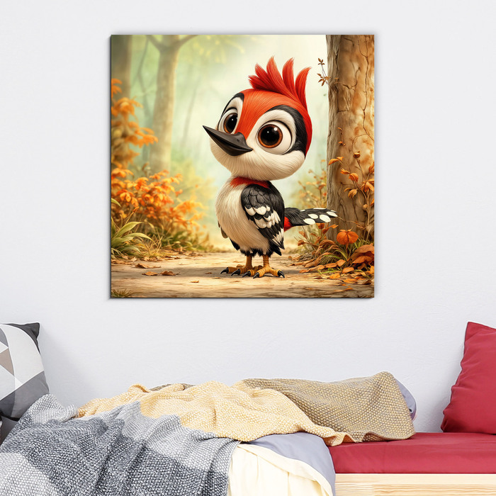 Detský obraz s motívom malého ďatľa prinesie do izby kúsok lesa a prírody. Roztomilý vtáčik s výrazným červeným chocholom pôsobí zvedavo a milo, čím podporuje detskú predstavivosť aj vzťah k prírode. Drevený obraz pre deti je vhodný ako dekorácia do chlapčenskej aj dievčenskej izby. Jemné prírodné farby krásne doplnia moderné aj škandinávske zariadenie.