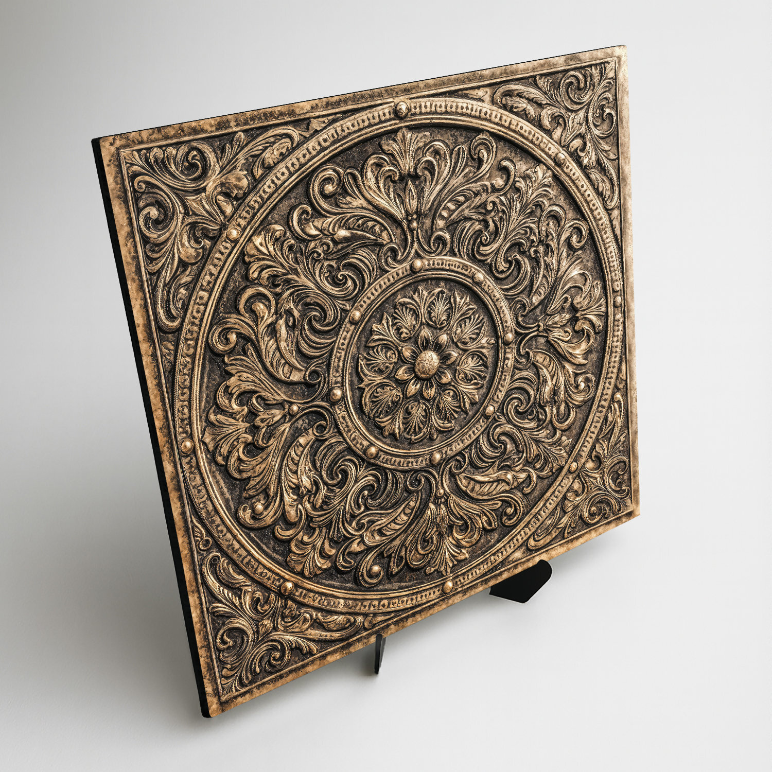 Význam obrazu: Kruhový ornament symbolizuje celistvosť, poriadok a nekonečnú harmóniu. Kovové tóny bronzu evokujú stabilitu a hodnotu, zatiaľ čo zložité vzory prepojenosť detailov v jeden dokonalý celok.