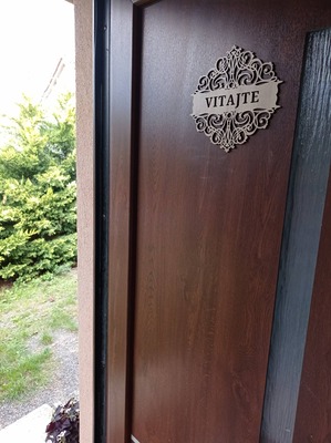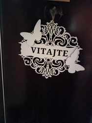 - Drevená ozdoba na dvere s nápisom Vitajte