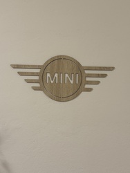 3D logo auta Mini na stenu vyrezané z dreva je originálny darček pre muža alebo ženu - majiteľa auta značky Mini. Výkon a malé rozmery auta Mini z neho robia jedno z najštýlovejších a najpraktickejších áut na svete. Drevená dekorácia je perfektným bytovým doplnkom na stenu v kancelárii, detskej izbe alebo garáži. Vďaka svojmu jedinečnému a modernému dizajnu je logo vhodné do akejkoľvek miestnosti.