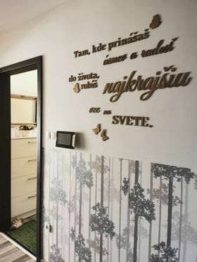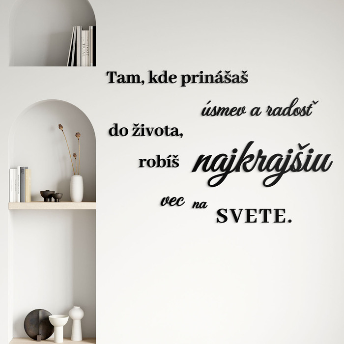 - V prípade, že si chcete citát rozmiestniť na stene podľa seba, je to možné. Rozloženie slov ani medzier nie je fixne dané. Všetko záleží na vašej fantázii.
