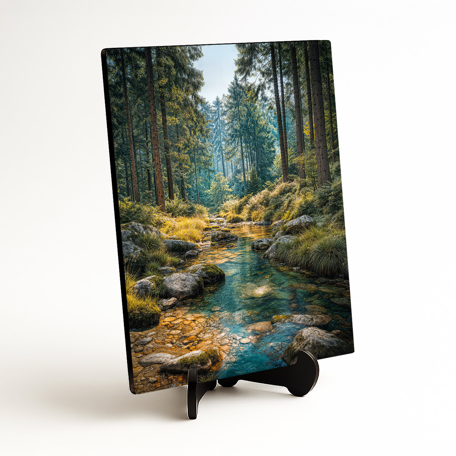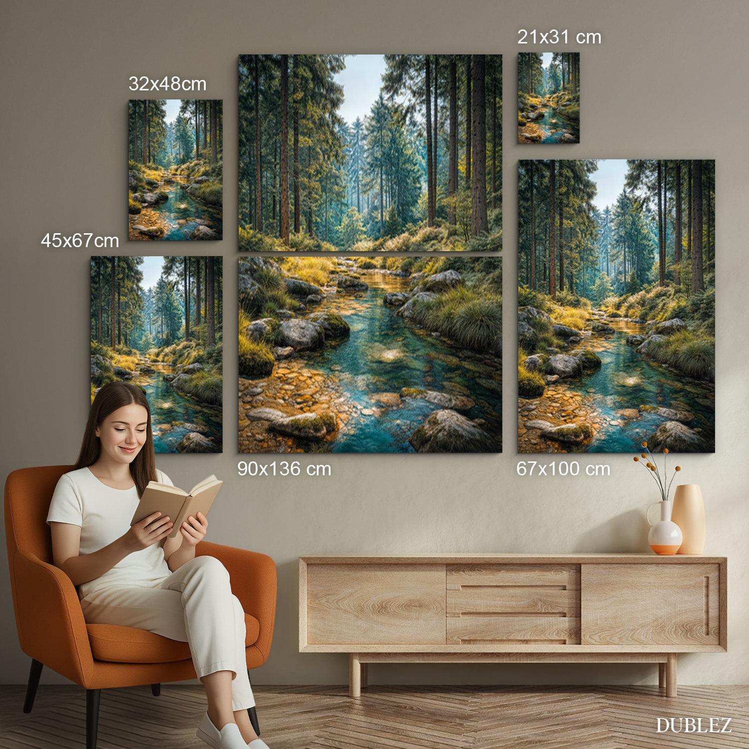 Farebný obraz Lesný potok vnesie do interiéru sviežosť a pocit čistého vzduchu. Vysoké stromy a priezračný potok s kameňmi pôsobí prirodzene, vyvážene a upokojuje priestor. Je ideálny ako obraz do obývačky, spálne, kancelárie alebo do chodby, kde chcete vytvoriť príjemnú atmosféru a pocit spojenia s prírodou. Drevený obraz na stenu vynikne v moderných aj minimalistických interiéroch a pôsobí na stene elegantne, čisto a nadčasovo. Skvelo sa kombinuje s drevom, neutrálnymi farbami a prírodnými doplnkami.