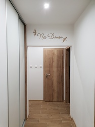 - Po nalepení všetkých častí citátu v šablóne môžete opatrne šablónu odlepiť zo steny. Odporúčame postupovať opatrne, aby ste predišli poškodeniu omietky.