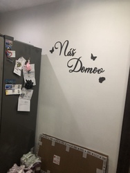 - Na zadnej strane slov a diakritiky citátu sa nachádza už vopred predlepená penová páska. Na nej sa nachádza tenká odnímateľná fólia, pod ktorou je lepivá pena, ktorou lepíme výrobok na stenu.