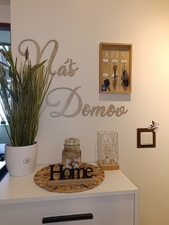 Drevená dekorácia s nápisom Náš Domov je veľmi obľúbeným bytovým doplnkom na stenu do obývačky alebo chodby. Slovenský, dekoračný nápis zútulní každú miestnosť a dodá jej moderný nádych s rodinnou atmosférou.