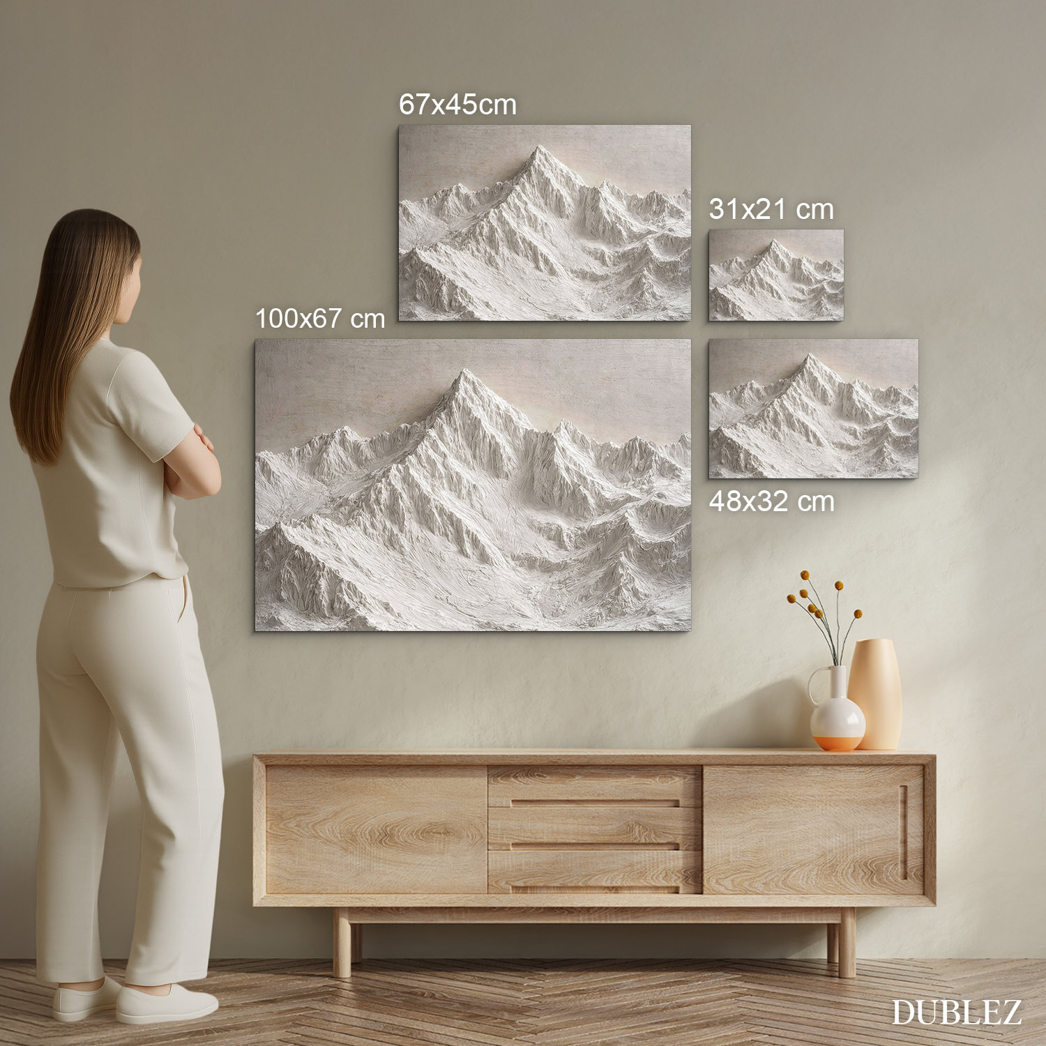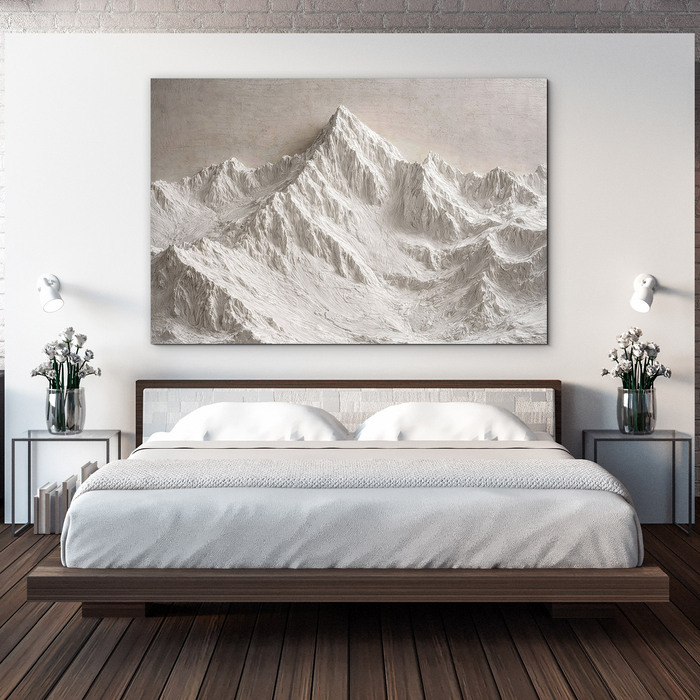 Moderný obraz hôr zaujme minimalistickým dizajnom a nadčasovou eleganciou. Motív horských štítov v čistom bielom prevedení sa perfektne hodí do obývačky, spálne, kancelárie aj predsiene, kde vynikne najmä v modernom, minimalistickom, japandi aj prírodnom interiéri. Precízna tlač na dreve zvýrazňuje každý záhyb mrazivej krajiny.