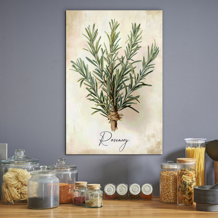 Drevený obraz bylinky - Rozmarín je ideálnou voľbou pre každého, kto hľadá štýlové obrazy do kuchyne. Jemná botanická ilustrácia rozmarínu pôsobí prirodzene a dekoratívne, pričom krásne doplní každý priestor. Tento obraz bylinky sa skvele hodí do rustikálnej, vintage aj modernej kuchyne. Detailné spracovanie a svetlé pozadie dodávajú obrazu čistý a nadčasový vzhľad.