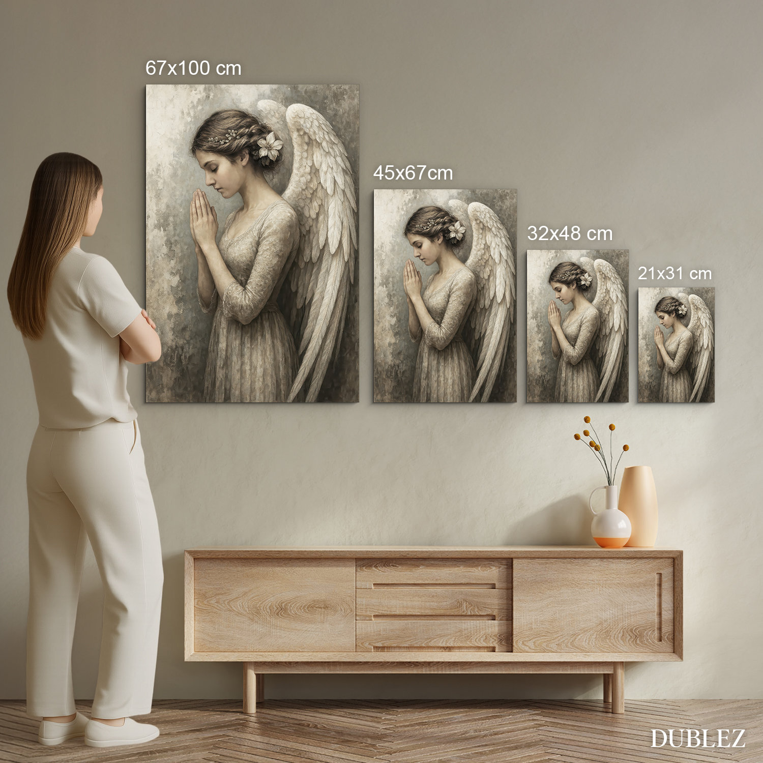 Význam obrazu: Anjel v modlitbe symbolizuje ochranu, pokoru a vnútorný pokoj. V kresťanskej tradícii vyjadruje prosbu za druhých, nebeské vedenie a prítomnosť vyššej moci, ktorá nás chráni.