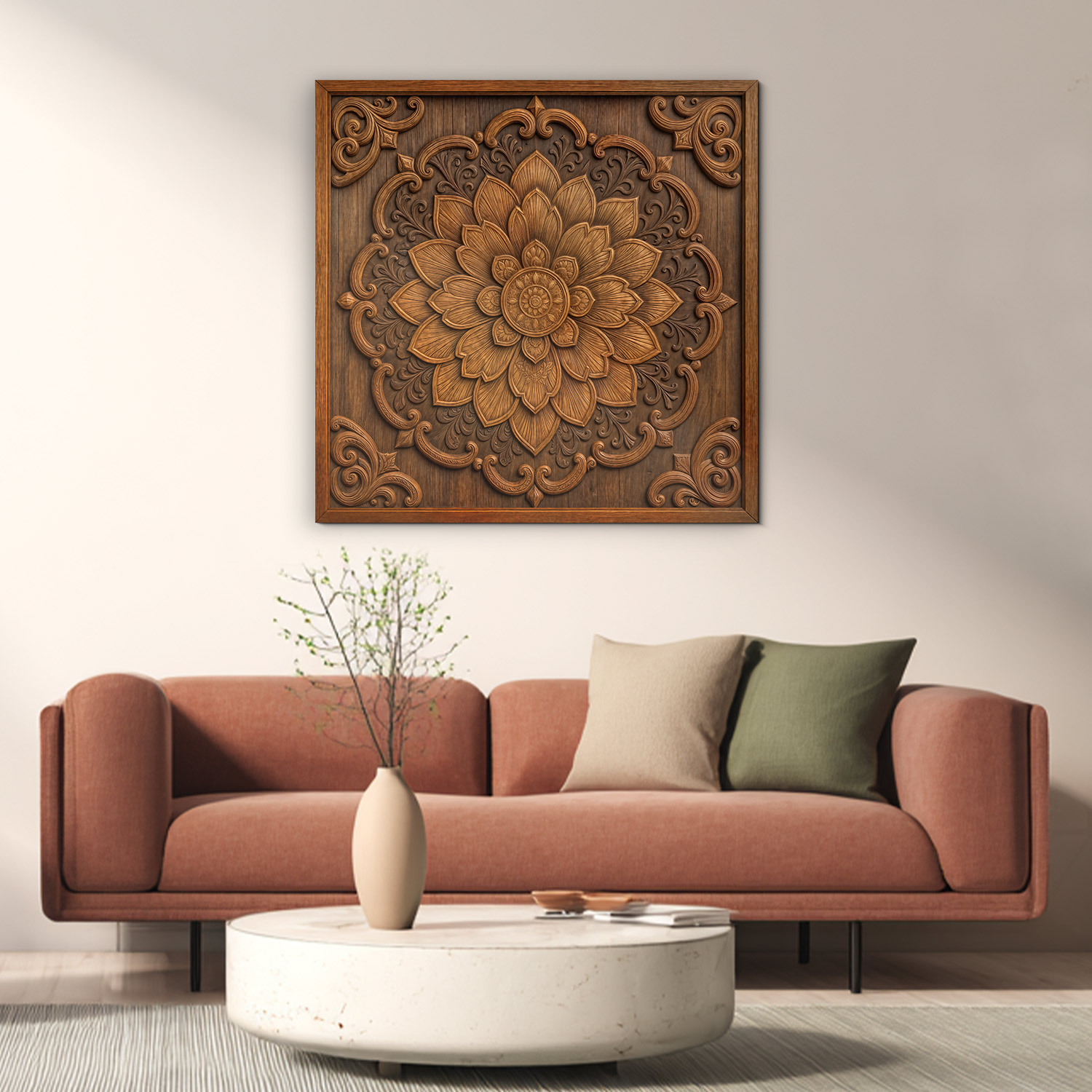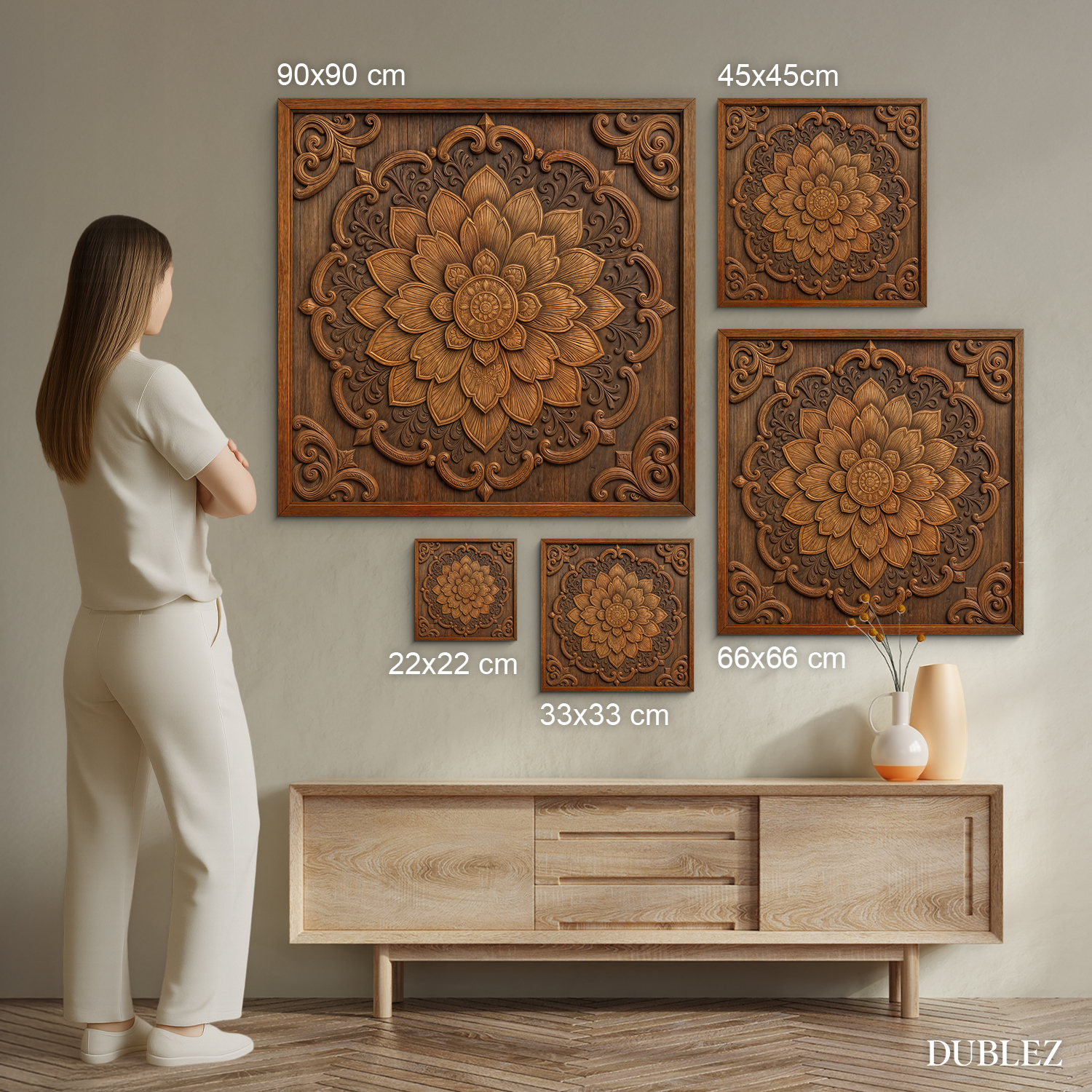 Drevený obraz s orientálnym kvetom v mandalovom štýle zaujme detailným prevedením a farbou orechového dreva. Obraz je vysoko kvalitne vytlačený UV technológiou priamo na drevený podklad. Mandala vynikne v obývačke, spálni, vstupnej hale, ale aj v meditačných či wellness priestoroch. Svojou pokojnou energiou a symbolikou skvele doplní interiér a vytvorí harmonickú atmosféru.