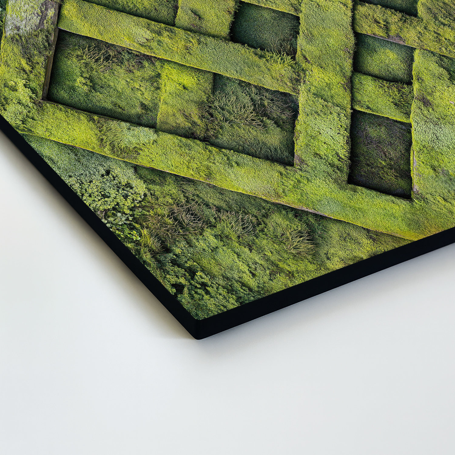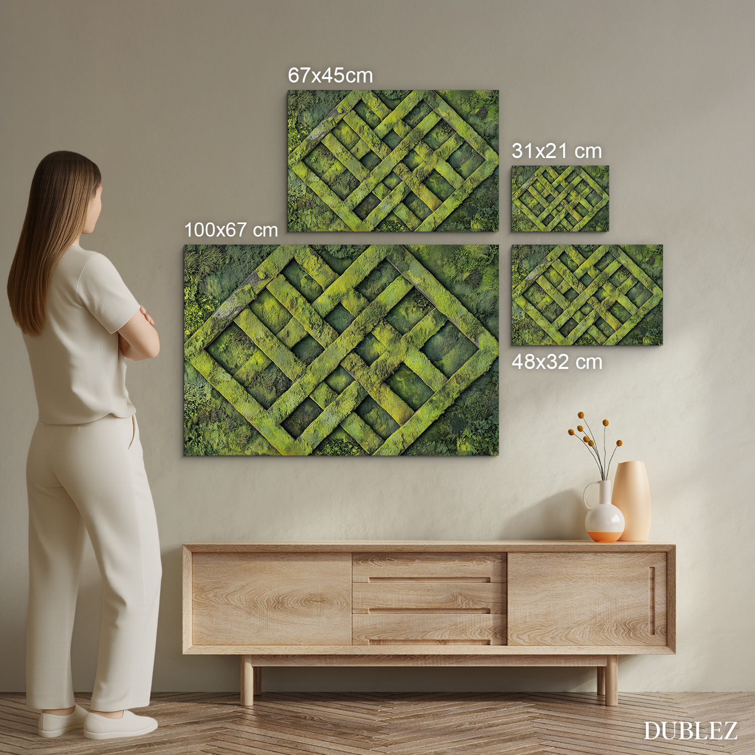 Vneste do svojho domova nádych prírody a geometrie s obrazom - Vzory v machu. Obraz machu zachytáva prepletené línie a motív uzla, ktoré symbolizujú spojenie. Ideálne sa hodí do moderných a škandinávskych interiérov, kde vynikne originálnym dizajnom a zelenou farbou. Skvele zapadne do jedálne, kancelárie či obývačky, kde navodí atmosféru pokoja a zároveň bude netradičný prvok, ktorý upúta pozornosť.