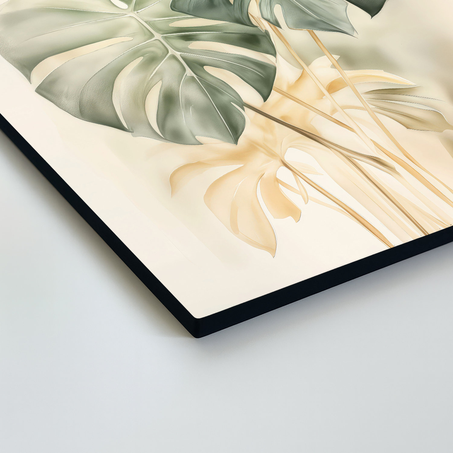 Drevený obraz s listami monstery je boho dekorácia, ktorá zjemní stenu a pridá priestoru prirodzenú ľahkosť. Na rozdiel od sýtych zelených dekorácií, tento kúsok stavil na šalviové, olivové a jemné krémové farby, ktoré na svetlom podklade pôsobia veľmi upokojujúco. Je to ideálny obraz do obývačky alebo spálne, kde chcete pridať jemný dotyk prírody.