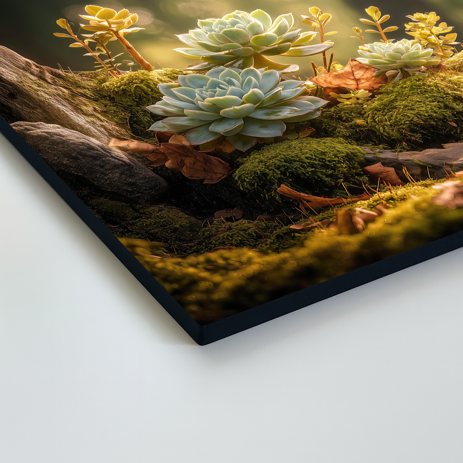 Význam obrazu: Sukulenty predstavujú odolnosť a schopnosť rásť aj v náročných podmienkach. V spojení s machom symbolizujú obnovu, vitalitu a návrat k prírode.