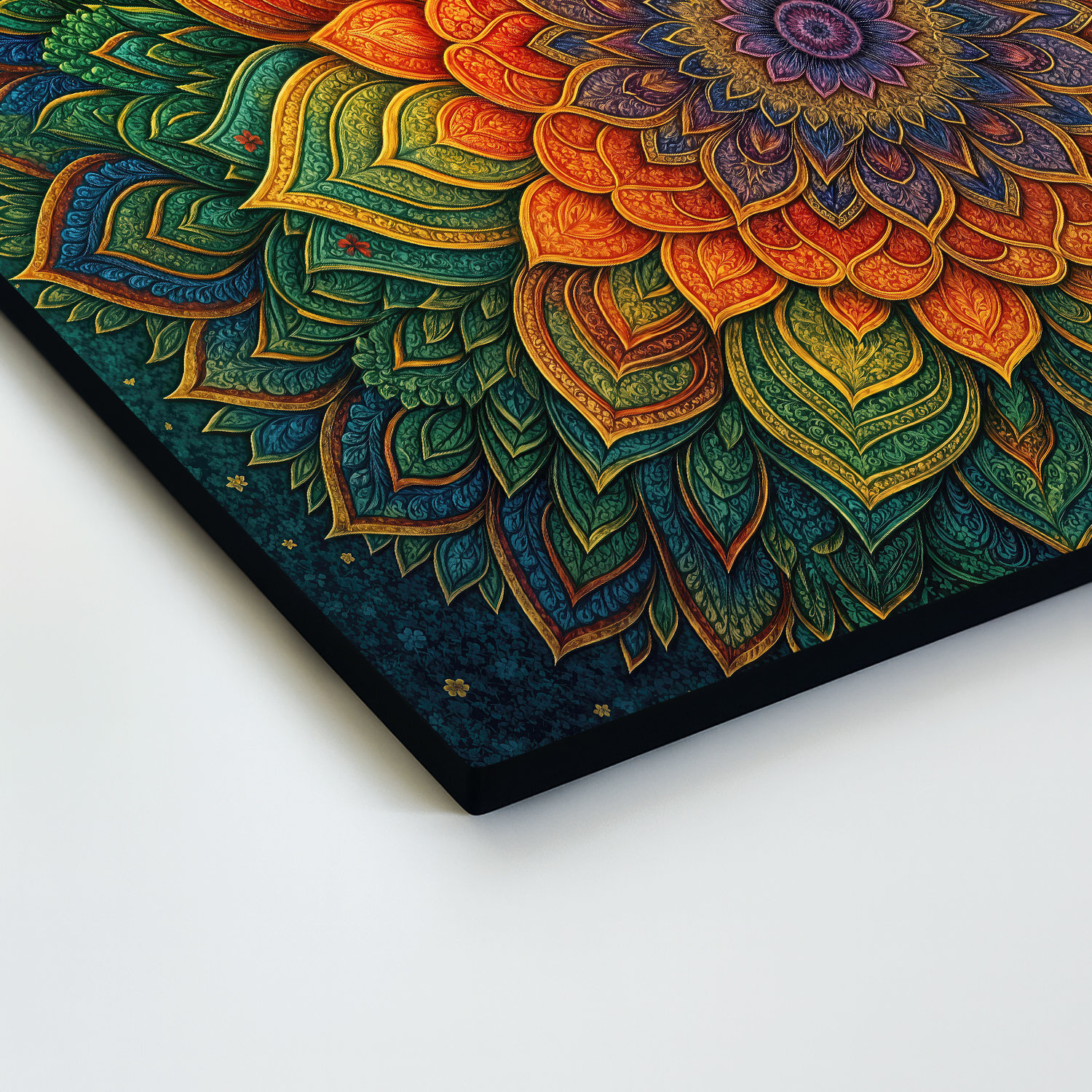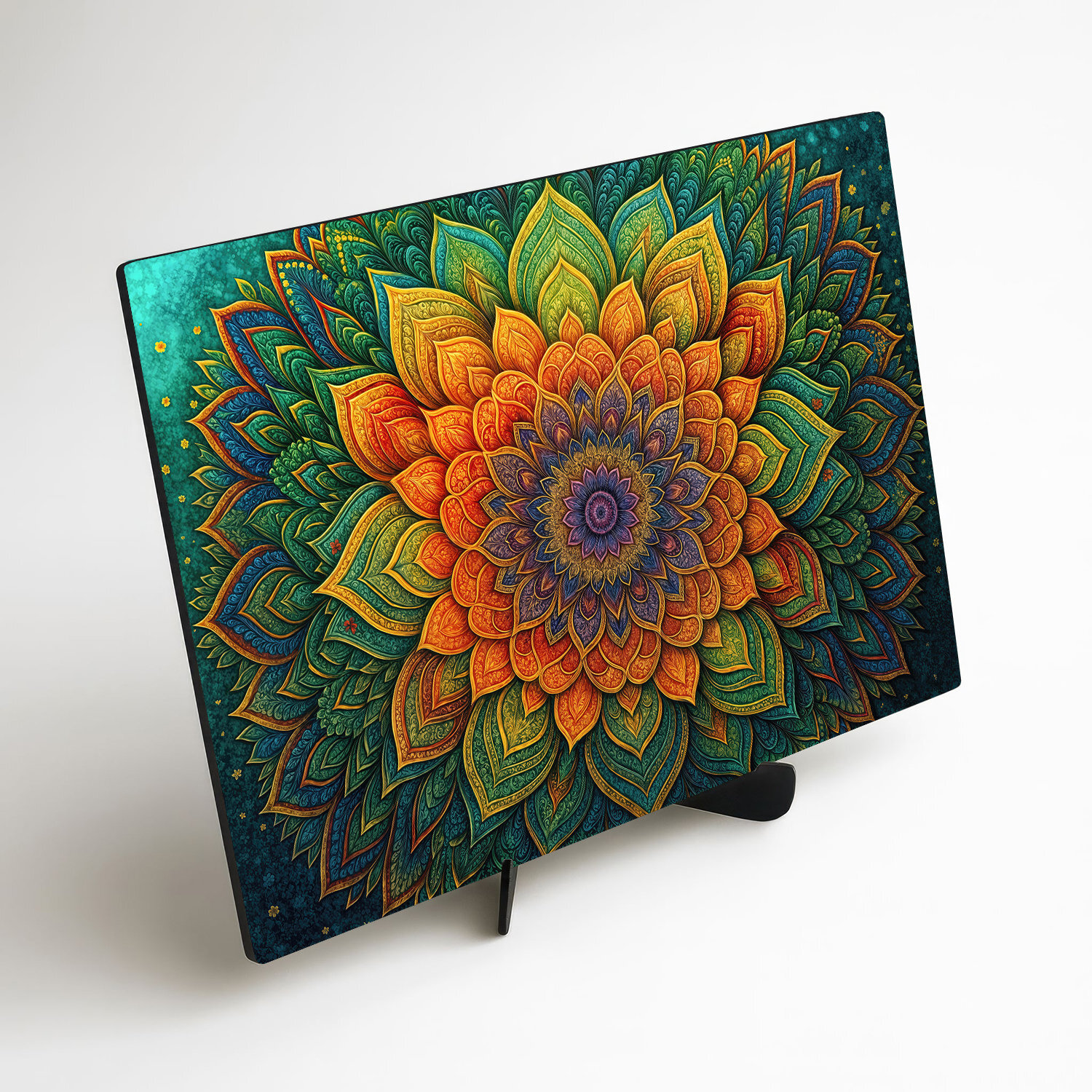 Mandala duše je farebný obraz, ktorý vnáša do interiéru pokoj, harmóniu a inšpiráciu. Bohatá kompozícia detailov a tvarov pripomínajúcich kvet rozžiari priestor a navodí príjemnú atmosféru, v ktorej sa človek cíti uvoľnene, vnímavo a v hlbšom spojení so sebou samým. Drevený obraz mandaly na stenu sa skvele hodí do obývačky alebo spálne.