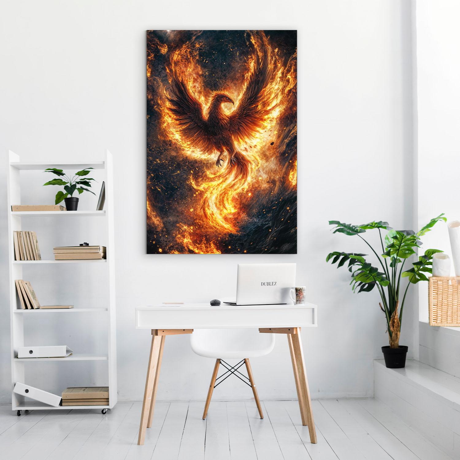Fénix v priestore pôsobí nielen esteticky, ale aj energeticky. Prináša do domova rovnováhu, impulz k zmene a tichú odvahu vykročiť vpred. Je to obraz, ktorý neosloví len oči, ale aj srdce. Či ho zavesíš nad pracovný stôl, do spálne alebo obývačky, vždy ti pripomenie, že nový začiatok je možný práve tam, kde si myslíš, že už nie je kam ísť.