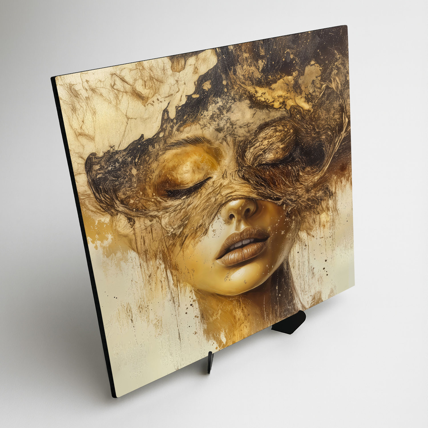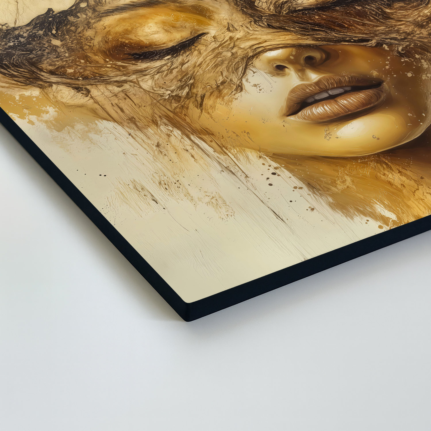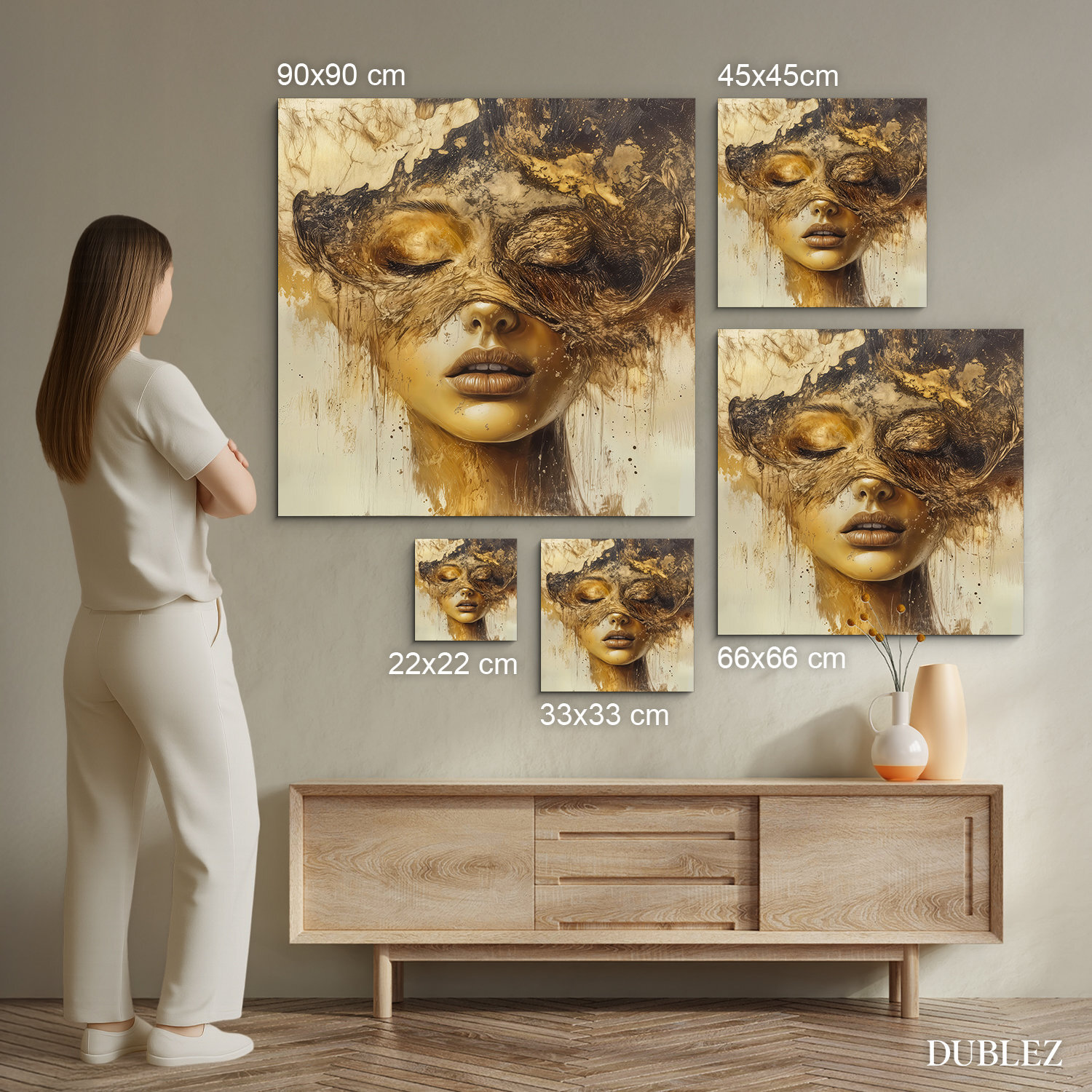 Hľadáte luxusný obraz na stenu, ktorý premení obývačku či salón? Drevený obraz - Zlatá maska je výrazné umelecké dielo so ženským portrétom, ktoré pôsobí tajomne, elegantne a exkluzívne. Vďaka kombinácii zlatej a krémovej sa hodí do moderného, glamour aj minimalistického interiéru.