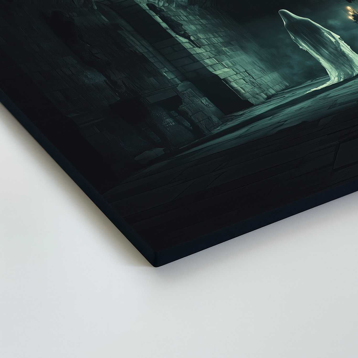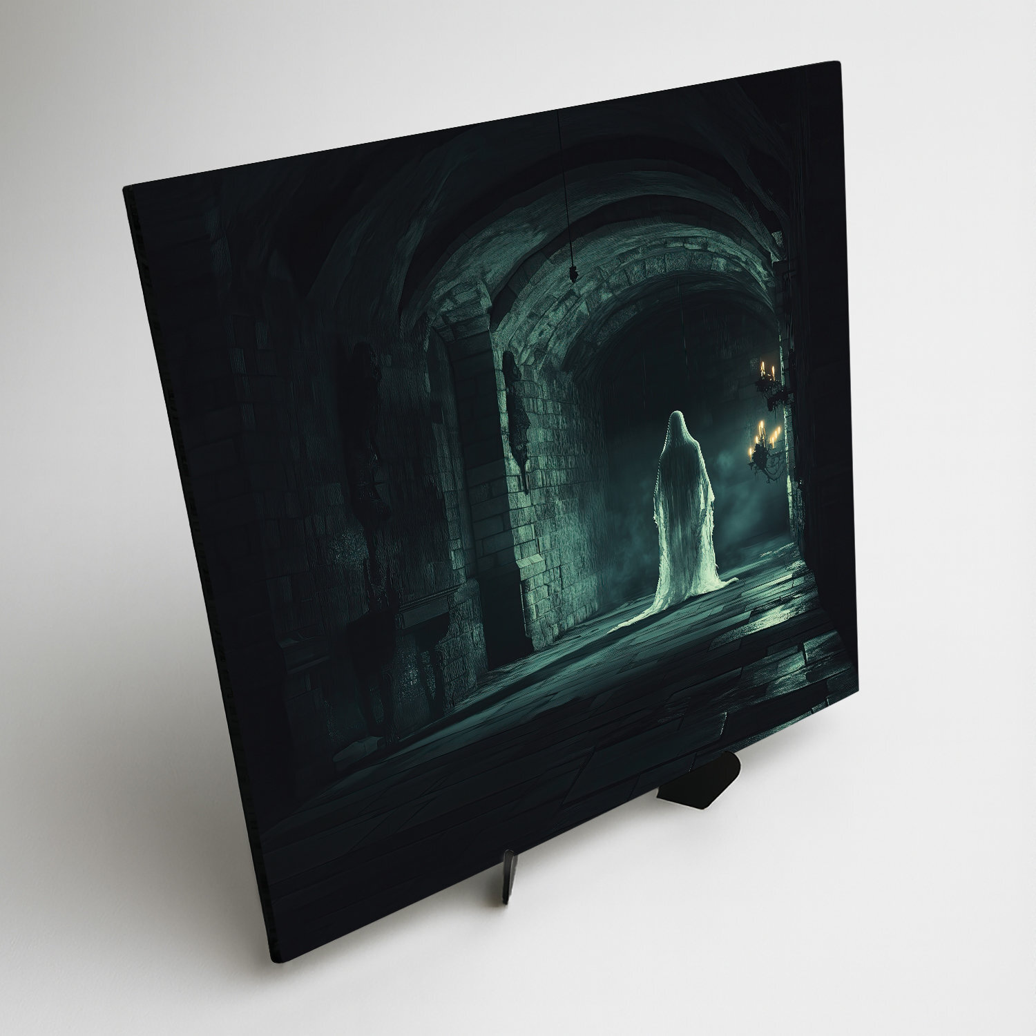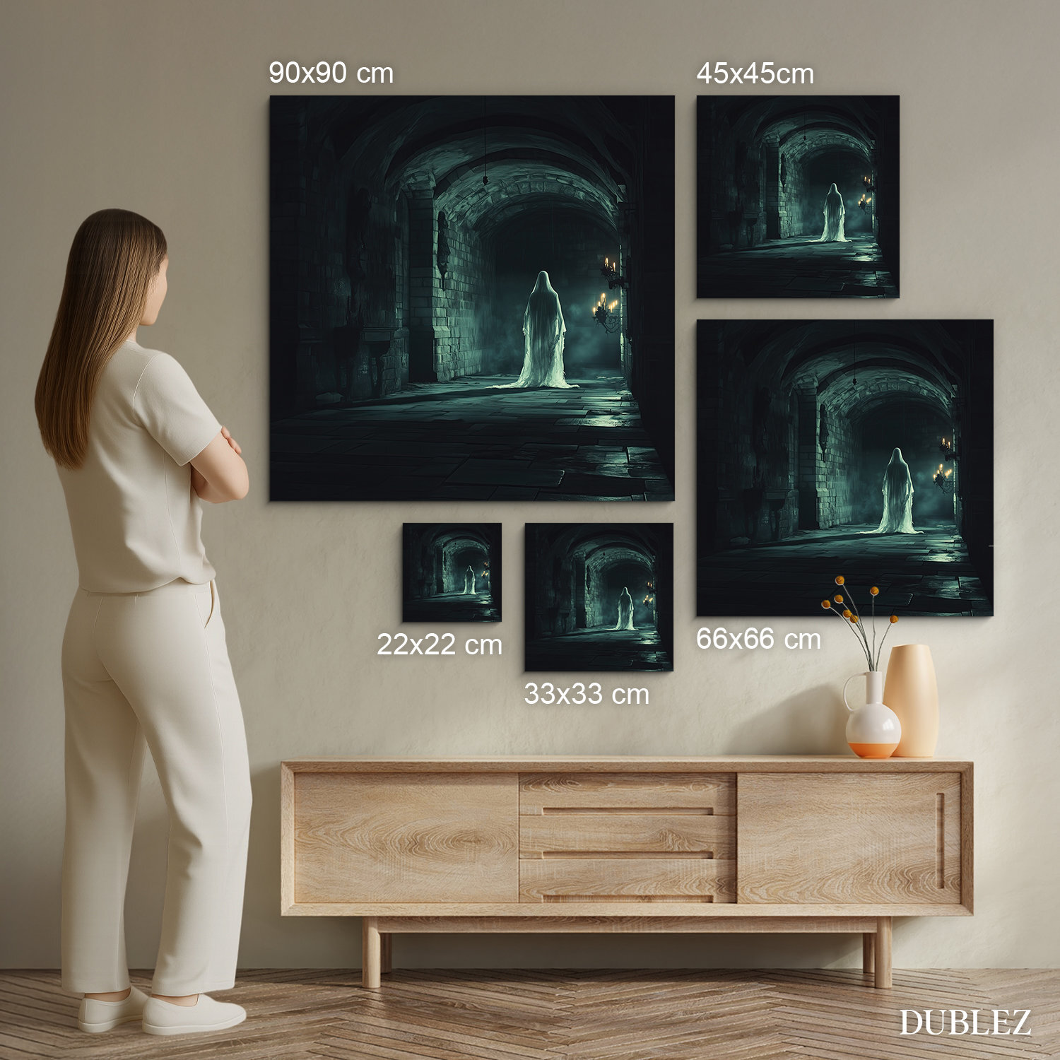 Gotický obraz zachytáva bielu, priezračnú postavu ženy, legendárneho ducha často spájaného s temnými tajomstvami starých hradov. Obraz ducha je dokonalým bytovým doplnkom pre milovníkov strašidelných príbehov, gotiky a Halloweenu.