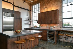 - Okrem betónu sa ako stavebný prvok používa veľmi často klasická pálená tehla. Vytvára peknú textúru, na pohľad sa jedná o teplejší materiál. V dnešnej dobe sa fantázii medze nekladú a na trhu je možné nájsť široký sortiment obkladov s pálenou tehlou. Jedná sa o tradičný materiál používaný v minulosti. Pre industriálny štýl je charakteristická pôvodná textúra tehly, prípadne natretá na bielo.