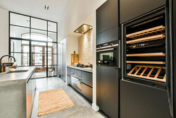Vo všeobecnosti platí, že kuchyňa v industriálnom štýle pôsobí masívne a zároveň jednoducho. Jej farby ladíme do tmavších odtieňov. Volíme buď drevené odtiene ako dub tabakový alebo dub hamilton. Ako dekor pracovnej dosky sa skvele hodí imitácia pohľadového betónu alebo kovu. Kovové prvky sú v kuchyni samozrejmosťou. Chladničku volíme taktiež s kovovým povrchom a necháme ju pekne vyniknúť.