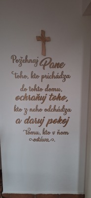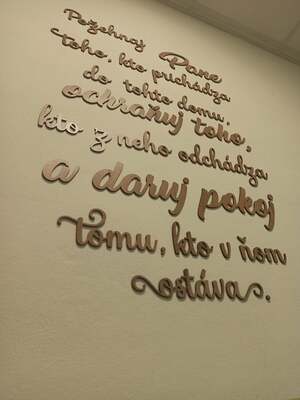 - Po nalepení všetkých častí citátu v šablóne môžete opatrne šablónu odlepiť zo steny. Odporúčame postupovať opatrne, aby ste predišli poškodeniu omietky.