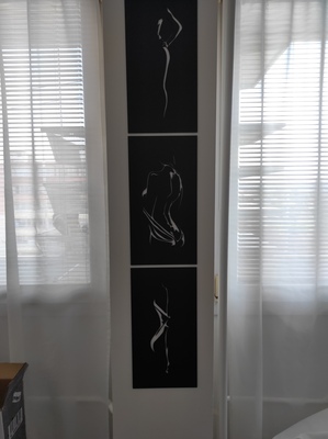 • Jednoduchá montáž na stenu pomocou obojstrannej lepiacej pásky. Možnosť voľby, ako trio obrazov rozmiestniť na stenu.
