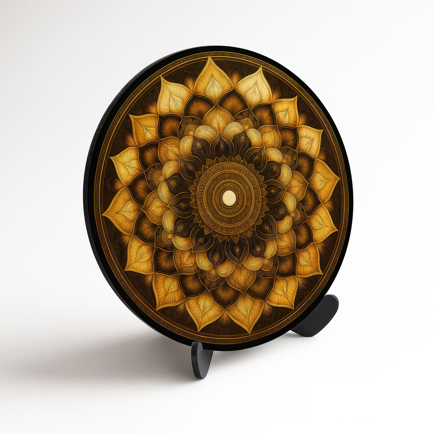 Mandala Regenerácia v zlatom prevedení je dizajnový drevený obraz, ktorý vnesie do interiéru pocit pokoja, obnovy a rovnováhy. Precízne vyrezávaný kruh pôsobí upokojujúco, zatiaľ čo teplé odtiene zlatistej, medenej a hnedej navodzujú príjemnú atmosféru. Ideálna ako dekorácia do obývačky, spálne, pracovne alebo priestoru na relax, kde potrebujete spomaliť a načerpať novú energiu.