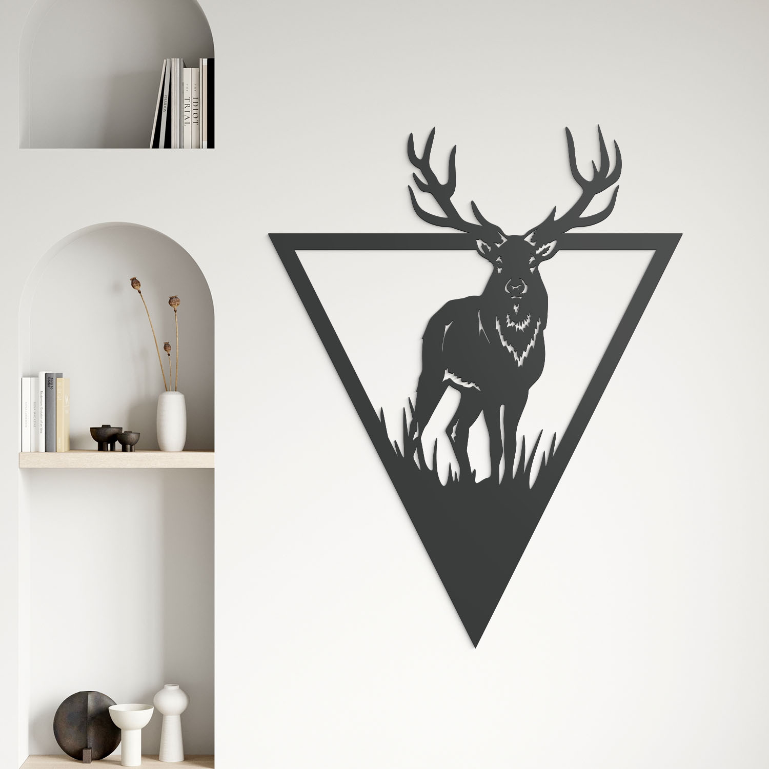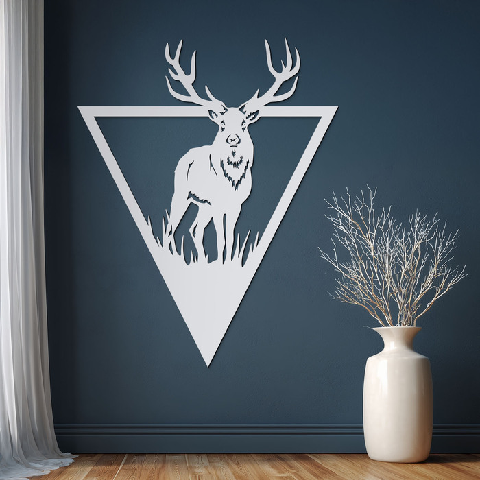 Objavte svet divokej prírody s moderným obrazom majestátneho jeleňa. Drevený obraz - Jeleň v trojuholníkovom ráme bude skvelým bytovým doplnkom do obývačky alebo chodby. Vďaka jedinečnému dizajnu zapadne do každého štýlu interiéru a bude ideálnym darčekom k narodeninám alebo sviatku. Nástenný obraz jeleňa je vyrezávaný z dreva, ktoré vďaka svojej hrúbke vytvára realistický 3D efekt.