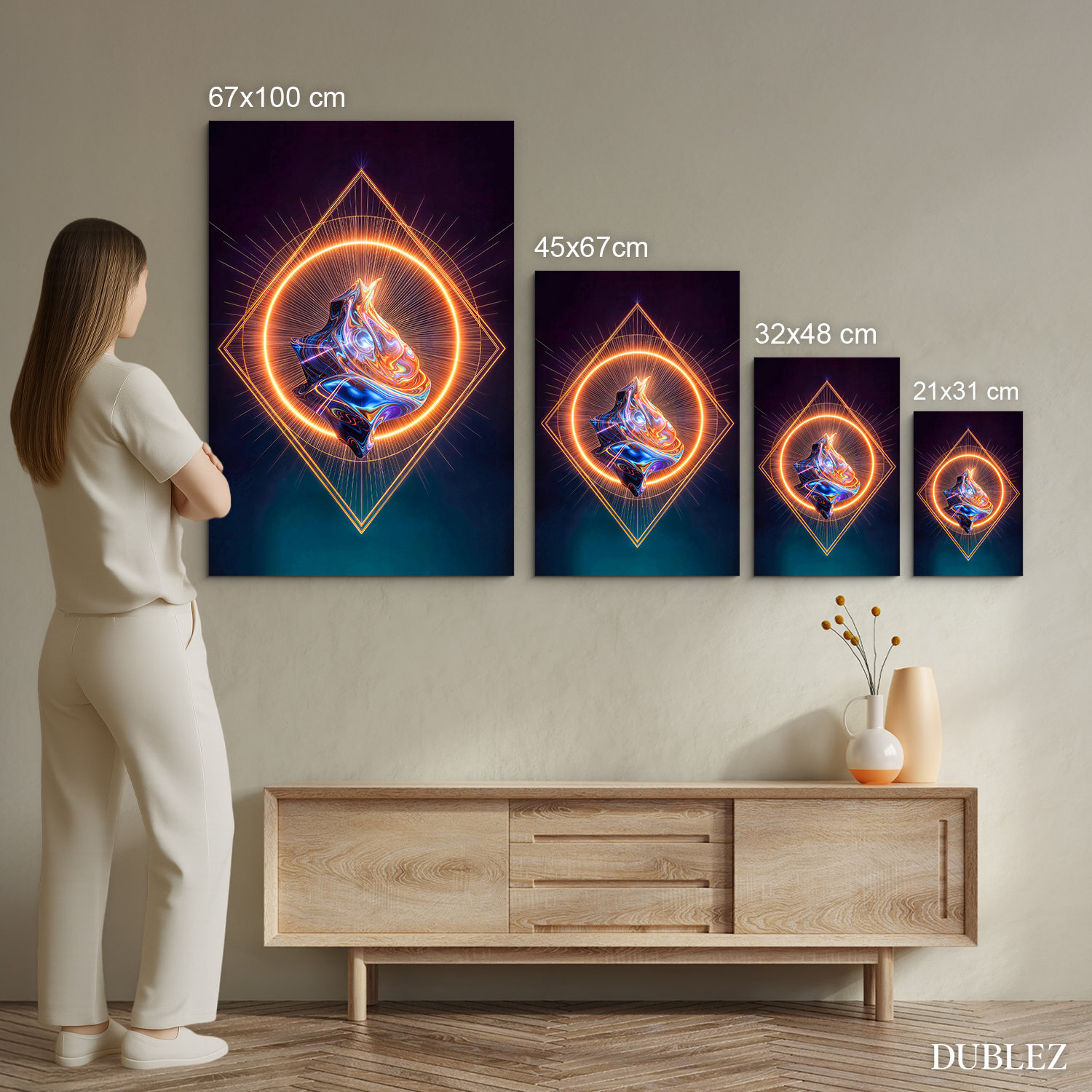Vyrábame prémiové obrazy DUBLEZ vytlačené na drevenej doske. Používame pri tom najpokročilejšie technológie a najkvalitnejšie farby na trhu. Motív vytlačíme na dosku a obraz vyrežeme pomocou laserovej technológie, vďaka čomu má výrobok z boku elegantný tmavohnedý okraj, ktorý ešte viac zvýrazní motív.