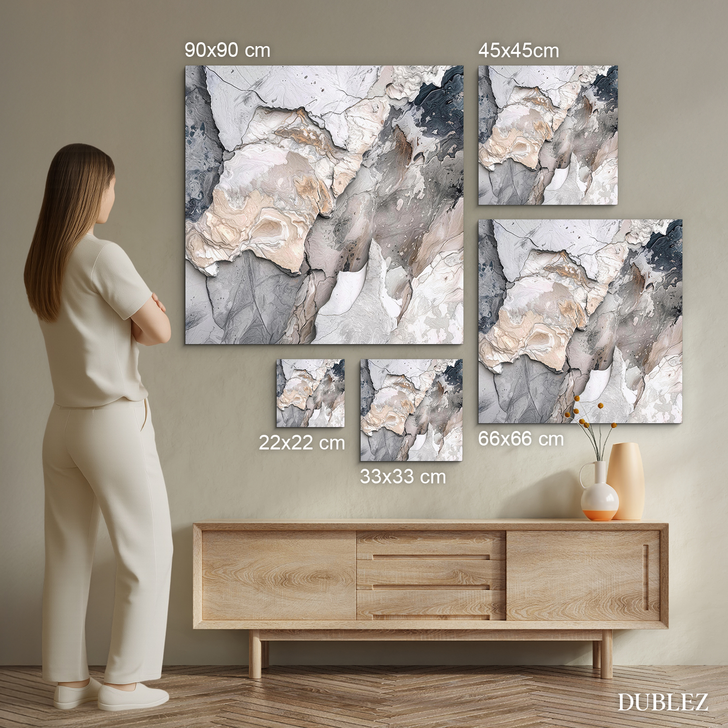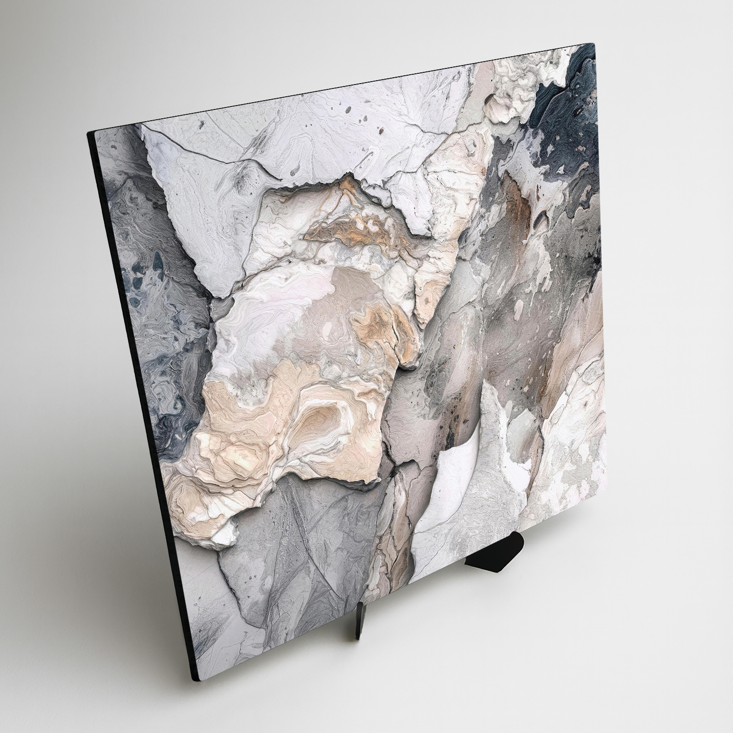 Drevený obraz – Lukrécia zaujme svojím mramorovým dizajnom, ktorý spája eleganciu a prirodzenú krásu prírody. Béžová a sivá farba sa prelínajú do jemných mramorových vrstiev, vďaka čomu pôsobí obraz nadčasovo a harmonicky. Abstraktný mramorový motív tlačený priamo na drevo vytvára jedinečný dojem luxusu a štýlu. Skvelo sa hodí do moderného interiéru, spálne alebo kancelárie.