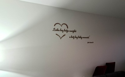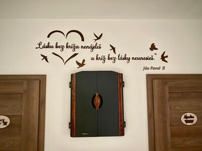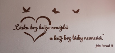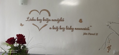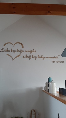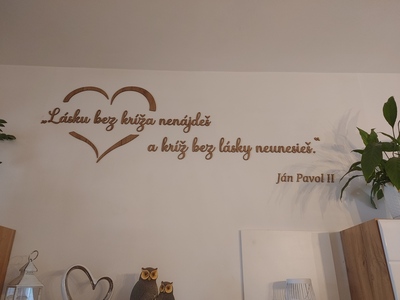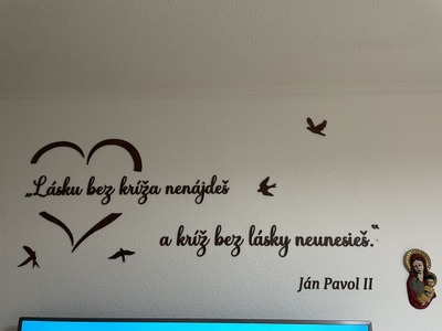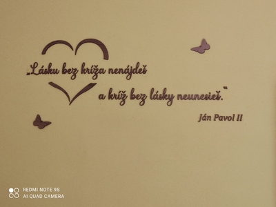 - Drevený citát na stenu o láske od sv. Jána Pavla II.