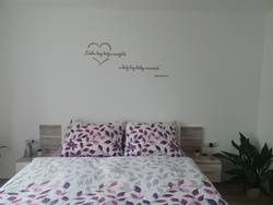 K citátu / nápisu je priložená obojstranná penová páska, s ktorou výrobok jednoducho prilepíte na stenu. K produktu dodávame aj navigačné šablóny, vďaka ktorým nalepíte citát na stenu presne tak, ako na ilustračnom obrázku.