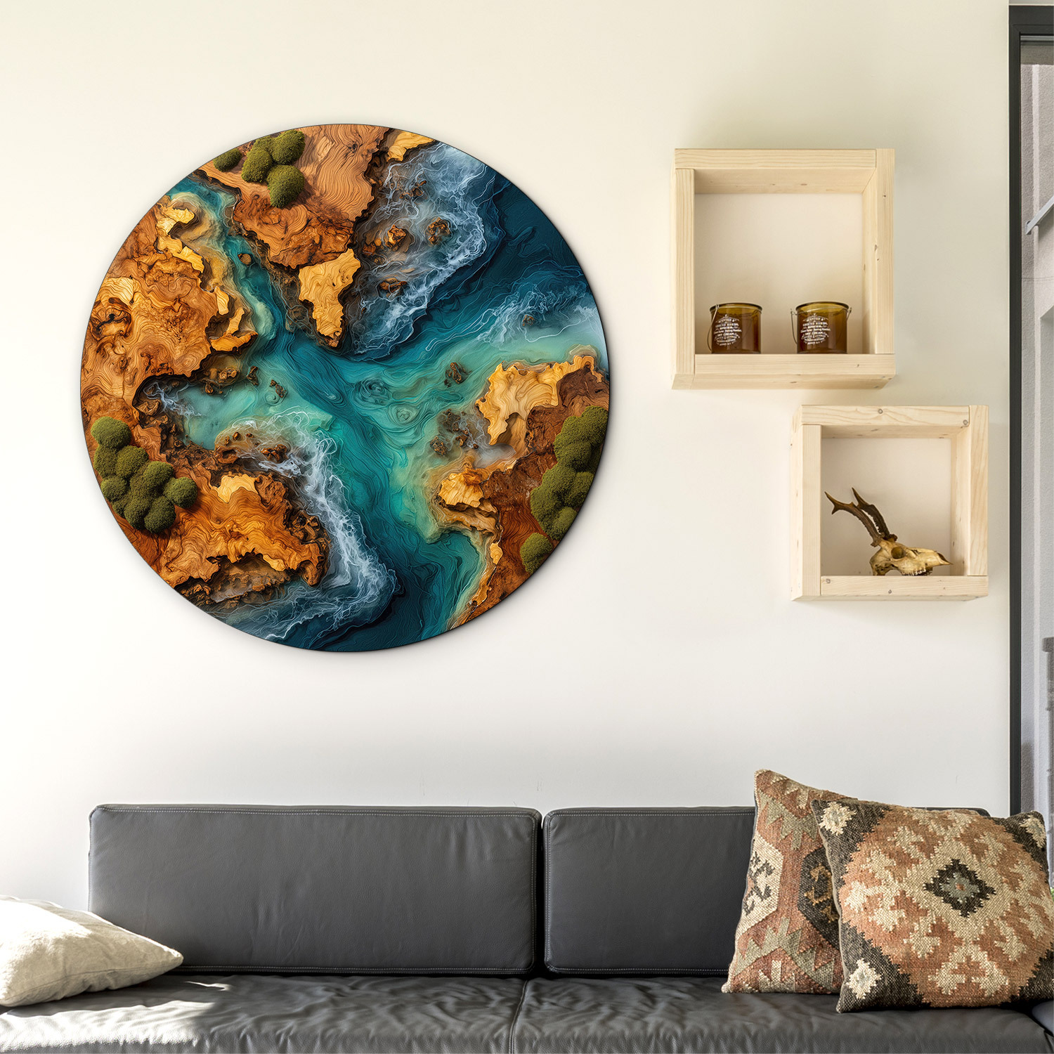Drevený obraz prináša dokonalú imitáciu tečúcej vody a členitého skalnatého terénu. Tyrkysový prúd s detailne vykreslenou penou sa kľukatí medzi masívnymi skalami v teplých okrových a hnedých farbách, ktoré verne napodobňujú prirodzenú eróziu kameňa a kresbu dreva. Celý obraz dopĺňajú plochy machu vytlačené pomocou špičkovej UV technológie priamo na drevo.
