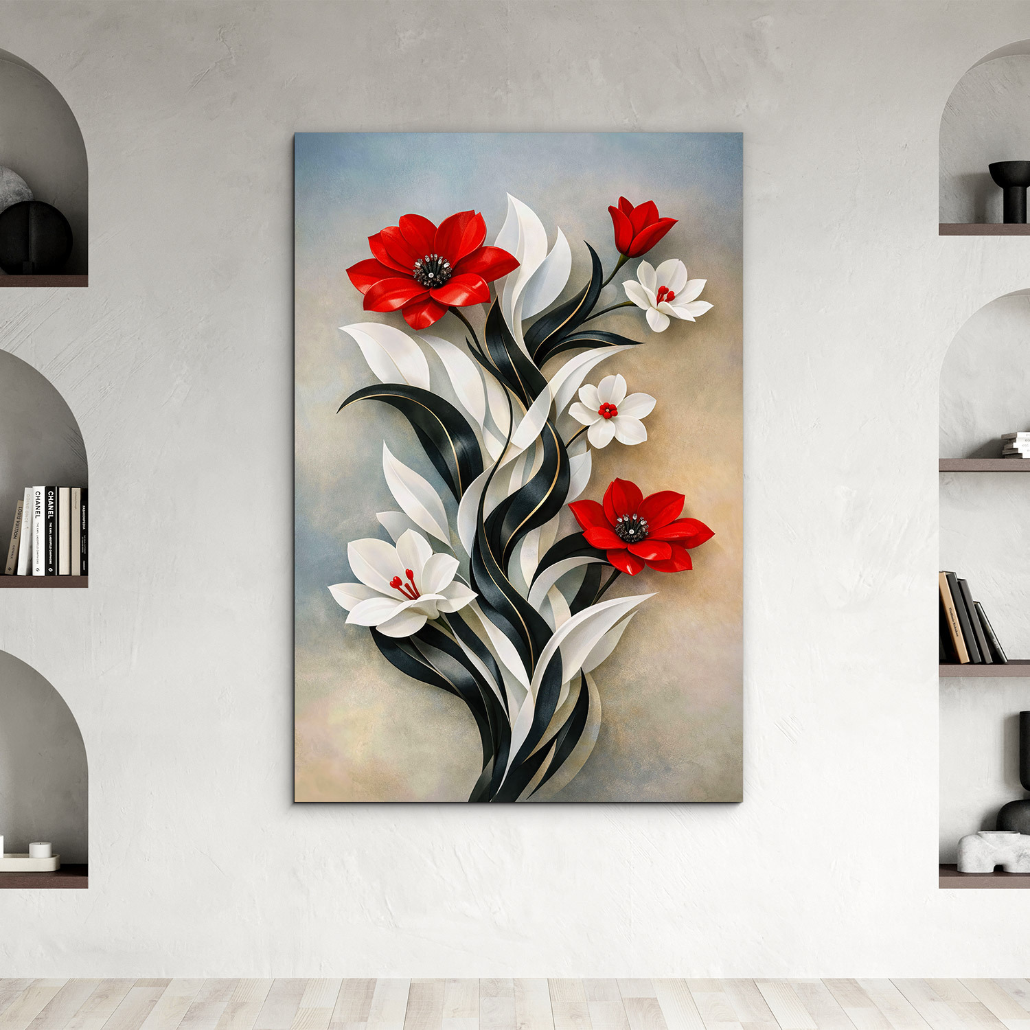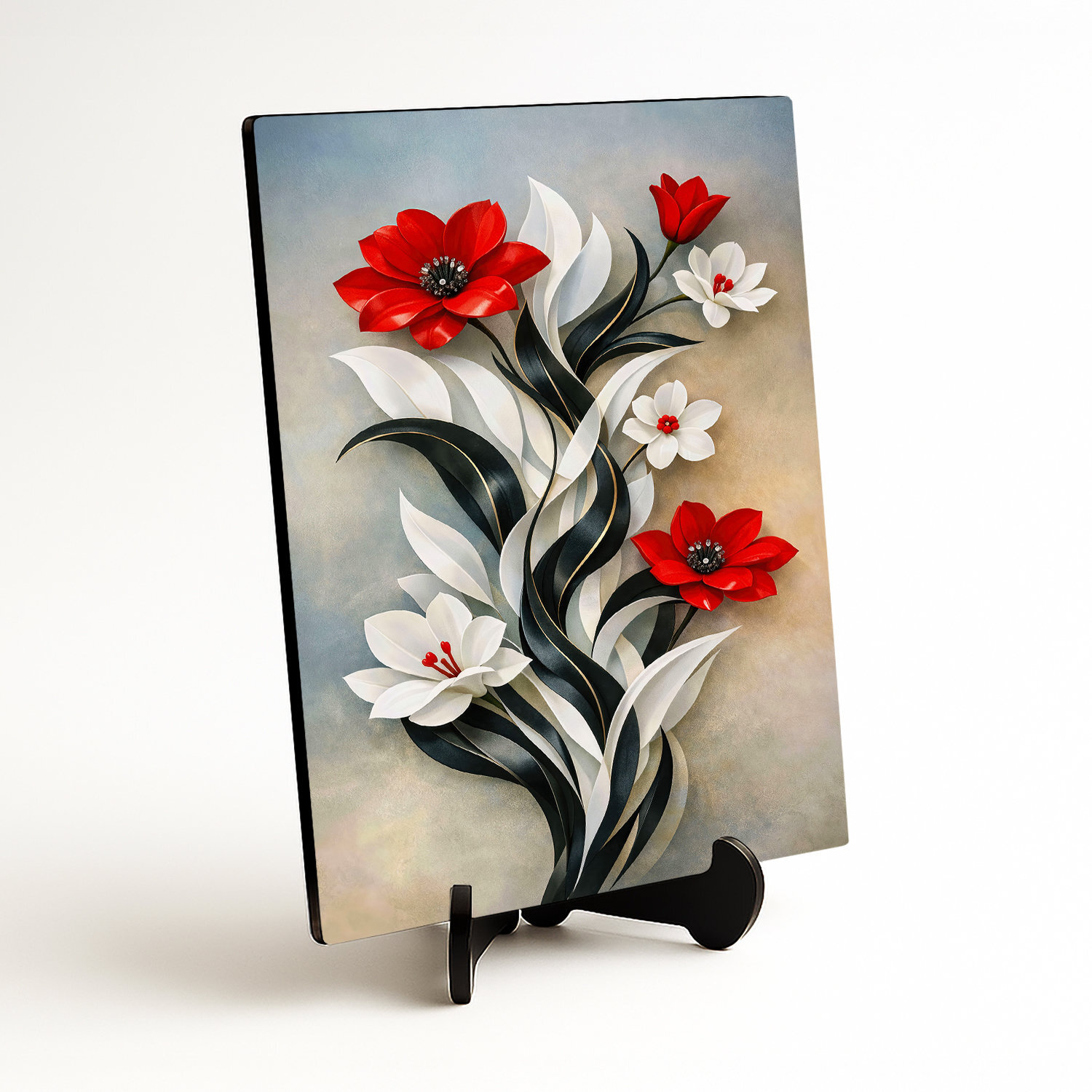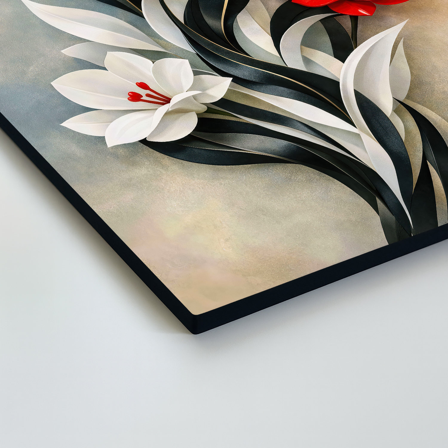 Význam obrazu: Červené kvety boli v dejinách umenia vždy symbolom životnej sily, lásky a hlbokých emócií. Biely kvet v kontraste s čiernymi listami reprezentoval rovnováhu medzi svetlom a tieňom, čo z obrazu robí symbol harmónie.