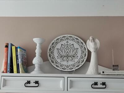 Drevená mandala lotus na stenu v podobe obrazu je skvelou drevenou dekoráciou do bytu a bude sa krásne vynímať na stene v obývačke alebo spálni. Momentálne sú mandaly veľmi trendové, moderné a žiadané dizajnové doplnky do domácnosti vzhľadom na ich pozitívne psychologické účinky.