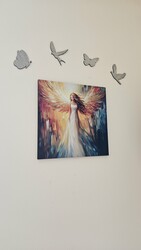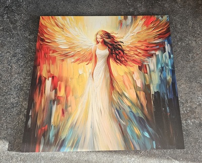Drevený obraz anjela s rozprestretými krídlami je krásna a symbolická dekorácia na stenu. Výrazné farby a vykreslené farby ťahom štetca na drevenom podklade vytvárajú ilúziu maľovaného obrazu. Obraz anjela je vhodný do obývačky, spálne alebo chodby a bude ideálny darček pre mamu, babku alebo inú dôležitú ženu vo vašom živote.