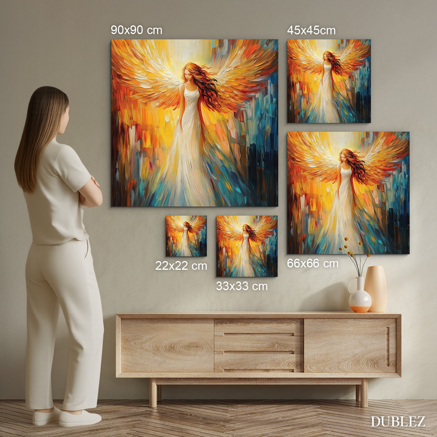 Význam obrazu: Umiestnenie obrazu anjela v domácnosti môže symbolizovať želanie duchovnej ochrany a bezpečia pre jeho obyvateľov.