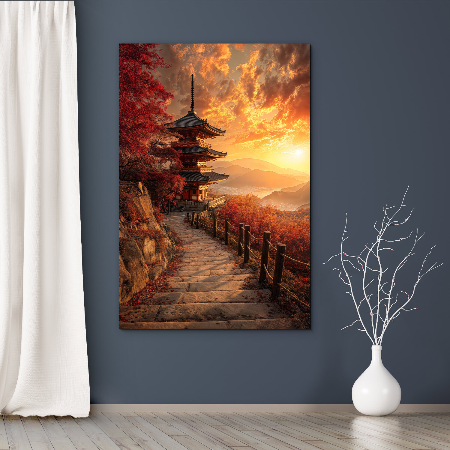 Význam obrazu: Pagoda symbolizuje duchovno, pokoj a rovnováhu. Západ slnka a japonská krajina spájajú prírodnú krásu s hĺbkou kultúry a tradície.