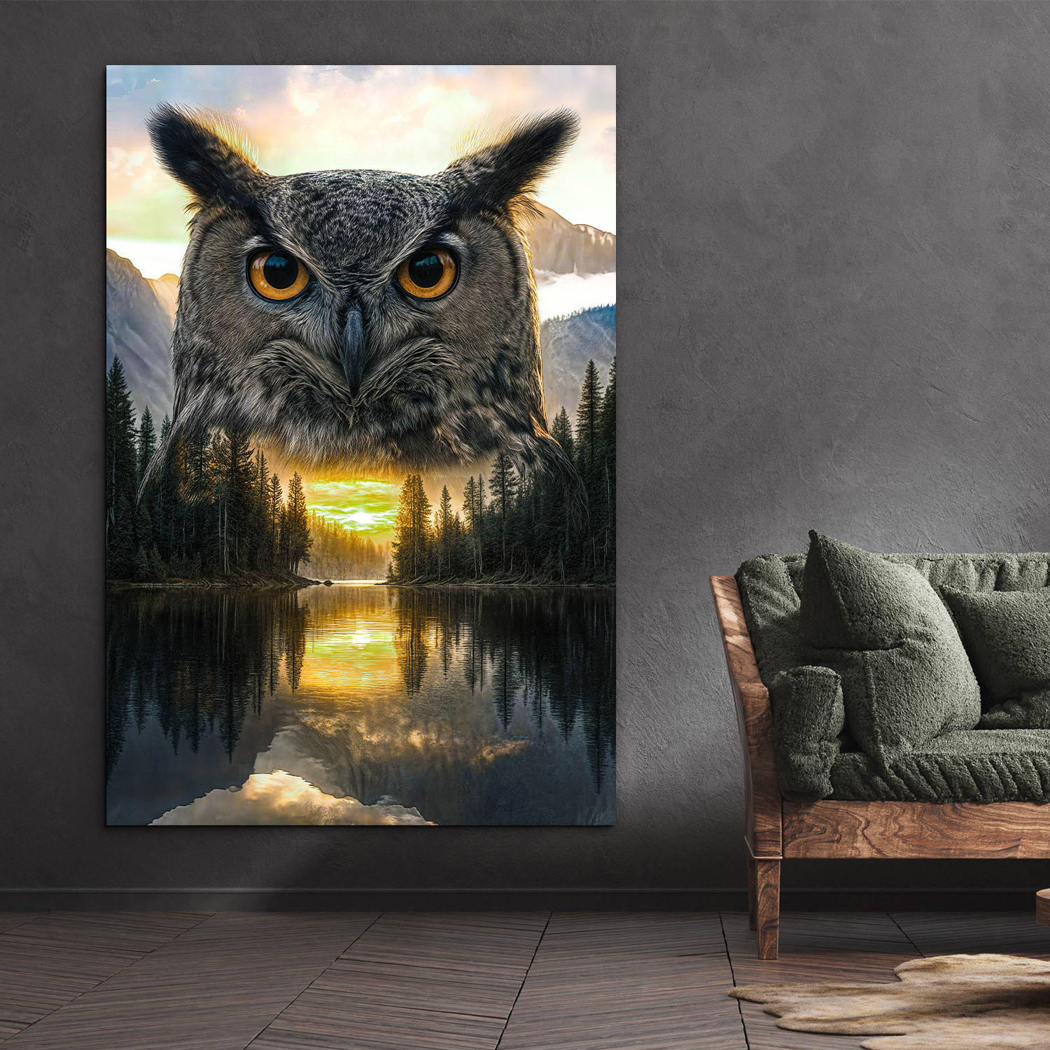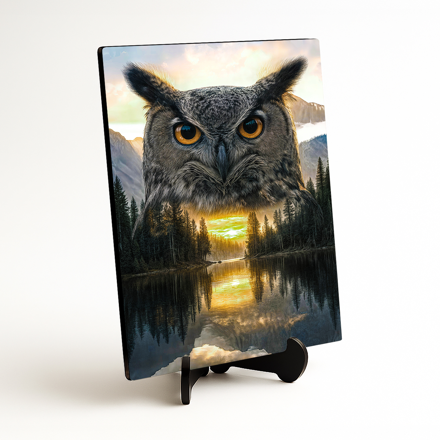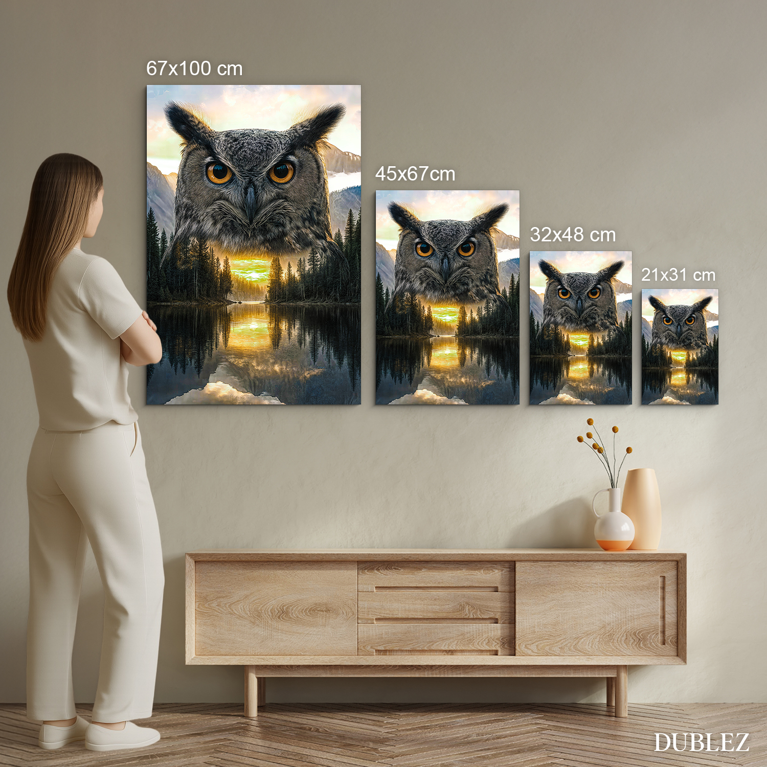 Význam obrazu: Sova je od nepamäti symbolom múdrosti, intuície a vnútorného pokoja. V spojení s prírodou a odrazom v jazere vytvára harmóniu medzi rozumom a dušou.