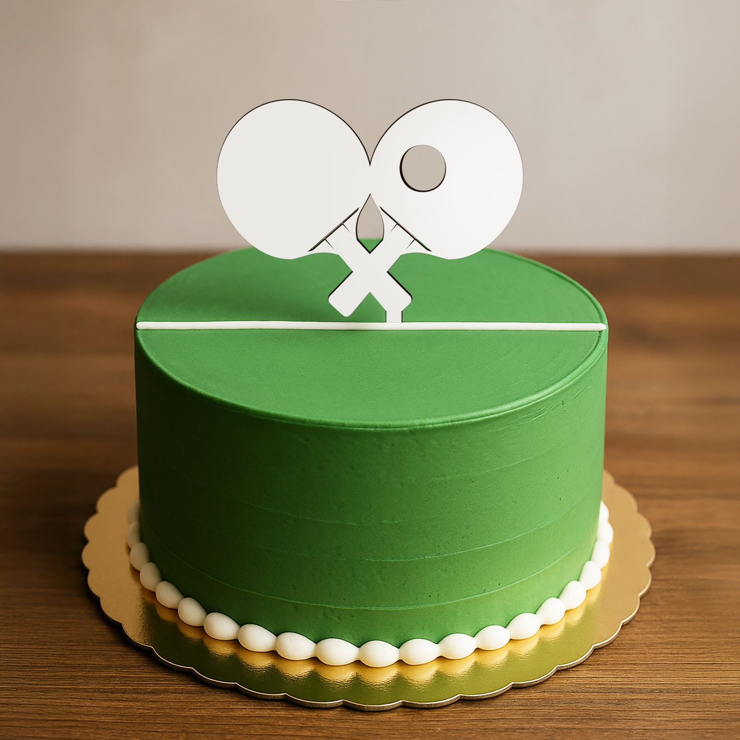 Oslávte narodeniny, turnaj alebo špeciálnu športovú udalosť s originálnou drevenou ozdobou do torty v tvare pingpongových rakiet. Stačí ho zapichnúť do torty alebo iného dezertu a okamžite dodáte svojej oslave správnu športovú atmosféru. Drevený pingpongový zápich dodá torte osobitý nádych. Vyrobený z kvalitného dreva a precízne vyrezaný laserom, vyniká svojím čistým dizajnom a elegantným prevedením.