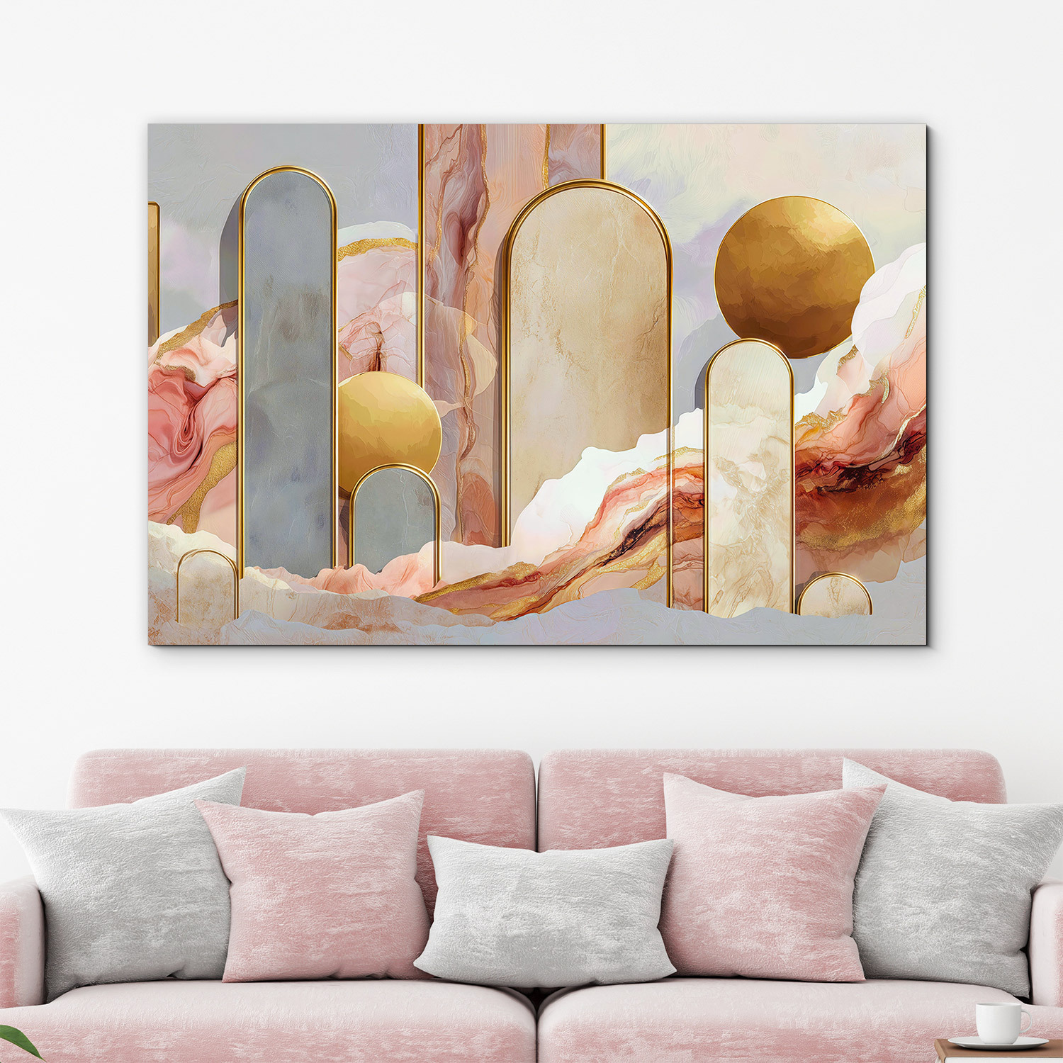 - Pastelový abstraktný obraz - Zlaté oblúky
