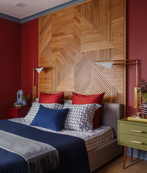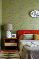 Postele v spálni sú väčšinou drevené a veľké. Pri vankúšoch a prikrývkach na posteli môžeme použiť jednoduché geometrické vzory v kombinácii s jednofarebnými. Niektorú zo stien môžete pokojne oživiť retro farebnou tapetou buď s kvetinovým alebo geometrickým vzorom.