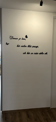- V prípade, že si chcete citát rozmiestniť na stene podľa seba, je to možné. Rozloženie slov ani medzier nie je fixne dané. Všetko záleží na vašej fantázii.