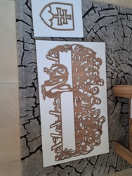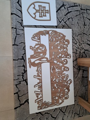 Výrobok je vyrezaný laserovou technológiou z drevenej HDF dosky - drevovláknitá doska s vysokou hustotou, ktorá vzniká zlisovaním drevených vlákien a živice pod tlakom. Materiál je pevný (hrúbka 3 mm), tvarovo stály a s hladkým povrchom. Vďaka pevnosti dokážeme vyrezávať aj jemné, tenké detaily.